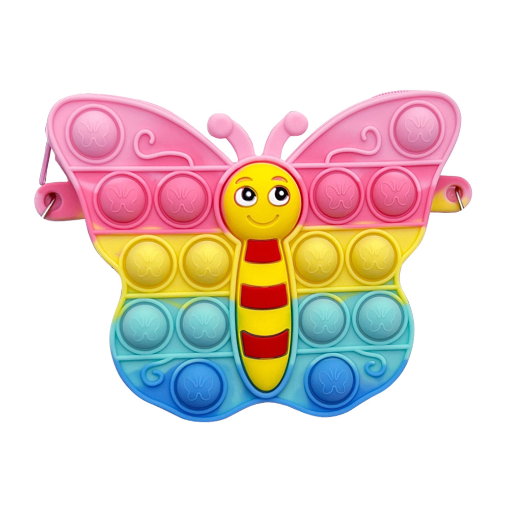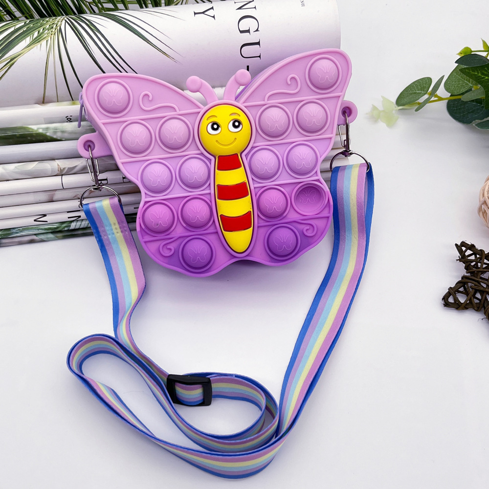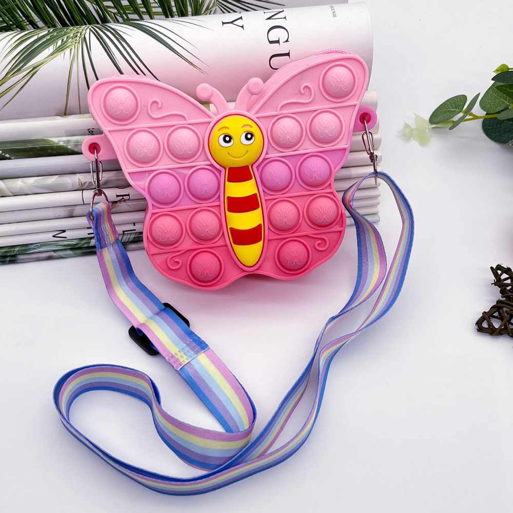 创意卡通网红蝴蝶硅胶包减压按按乐零钱包儿童韩系女孩单肩斜挎包 English | 投诉