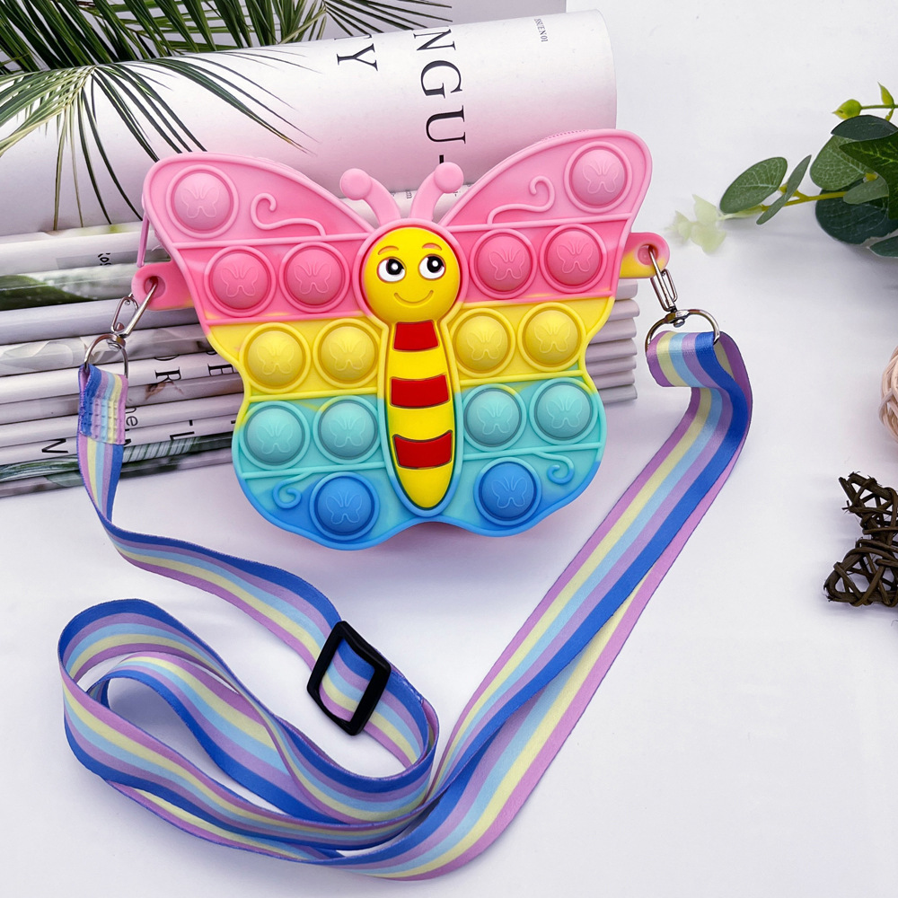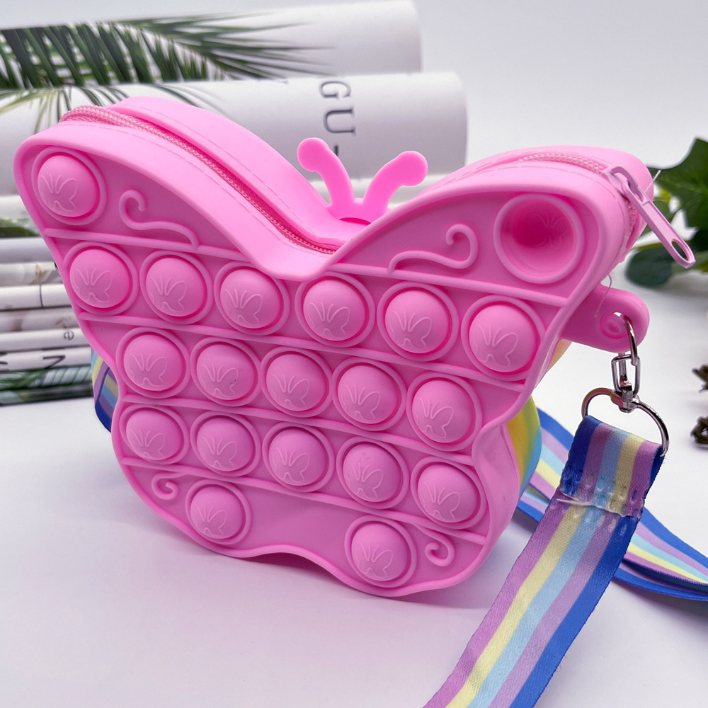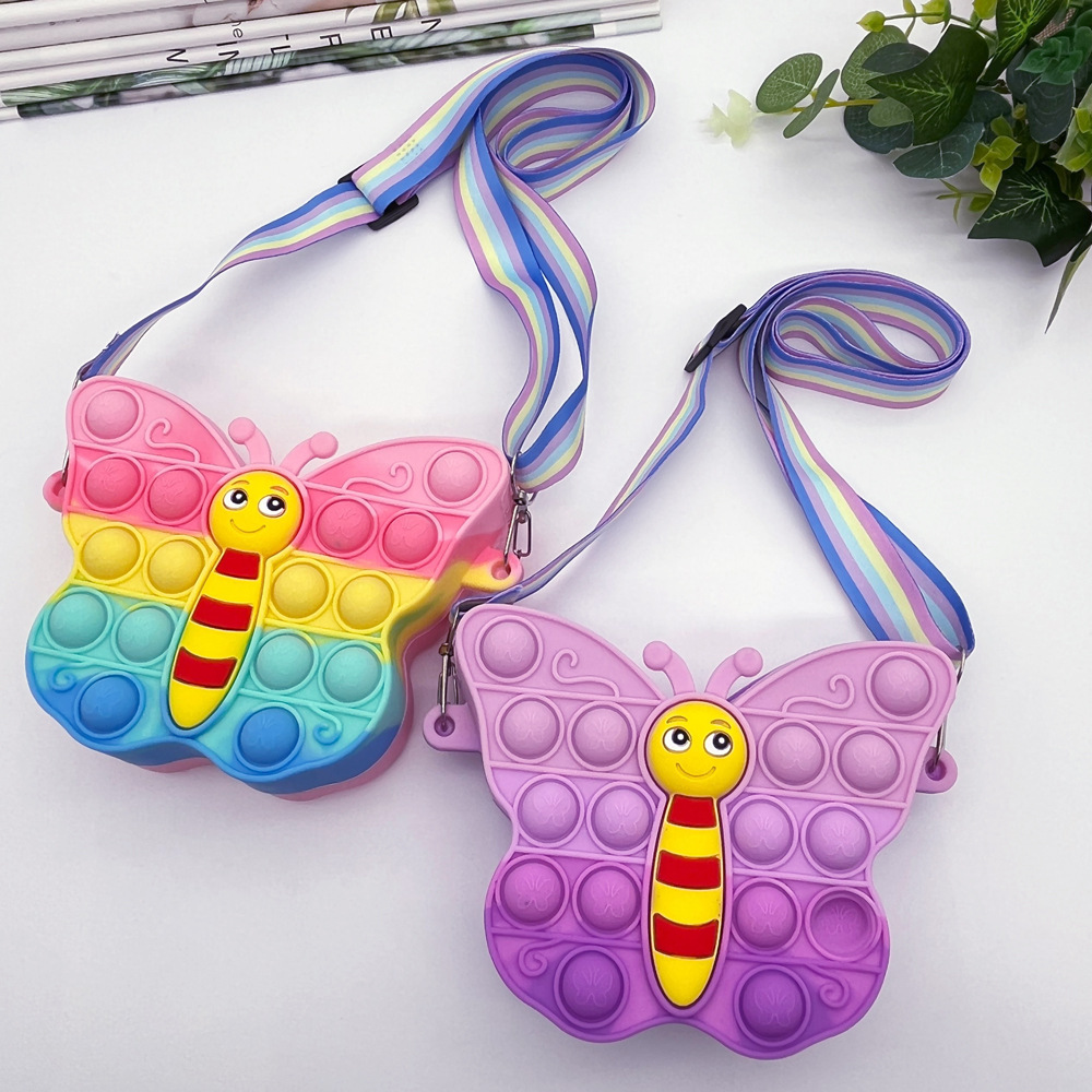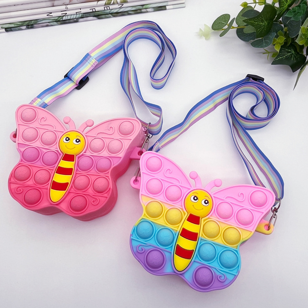 创意卡通网红蝴蝶硅胶包减压按按乐零钱包儿童韩系女孩单肩斜挎包 English | 投诉
