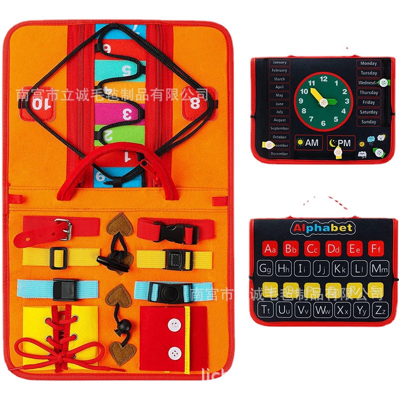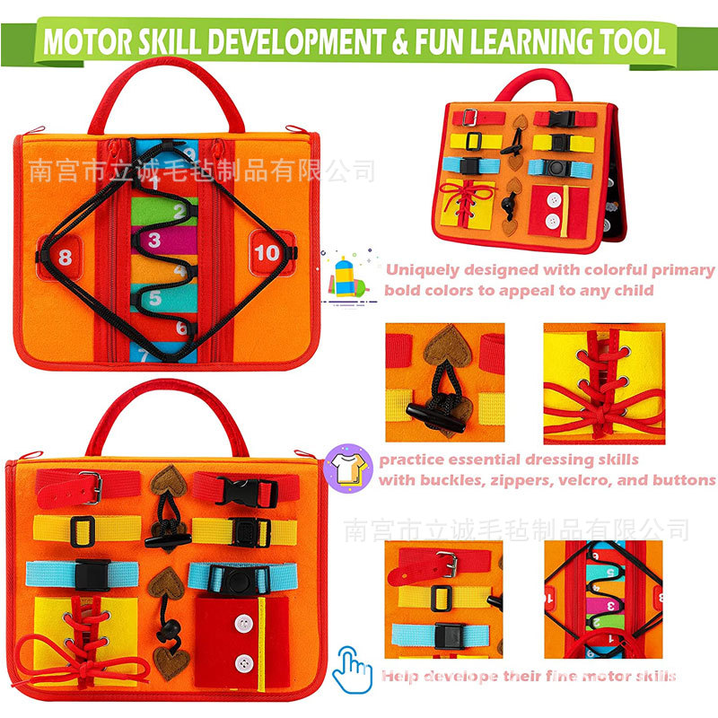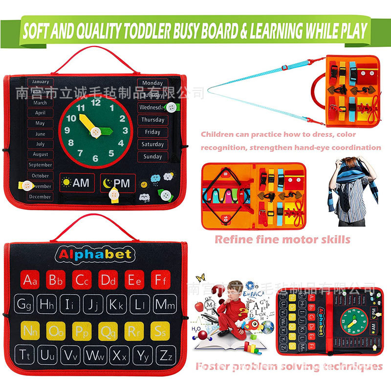毛毡忙碌板 儿童学习板批发早教玩具生活常识穿衣系鞋带毛毡书包 English | 投诉