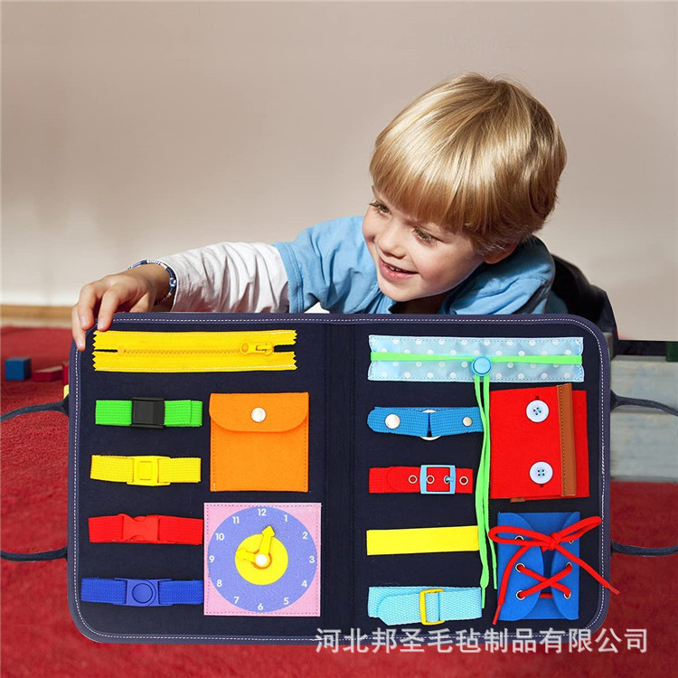 批发毛毡儿童忙碌板 穿衣系扣学习板 DIY早教儿童书包自闭症玩具