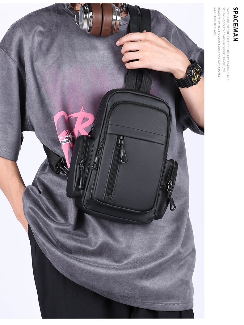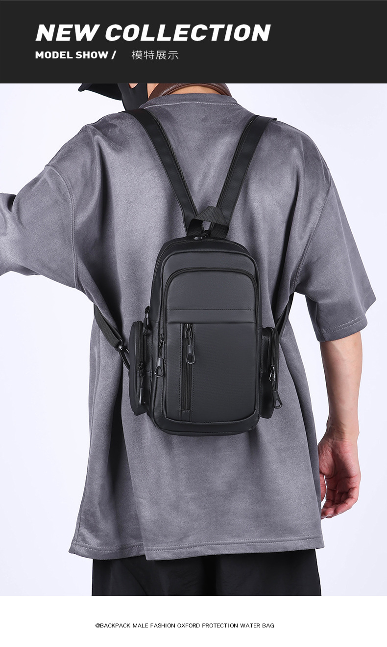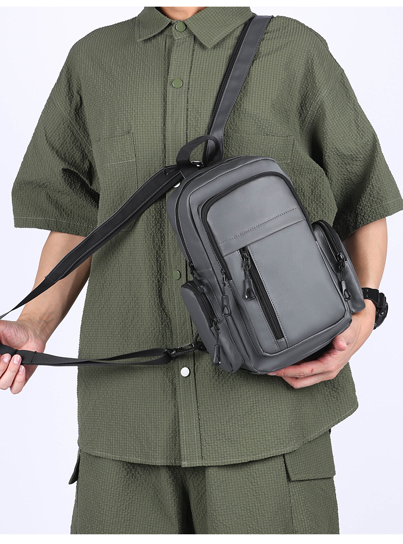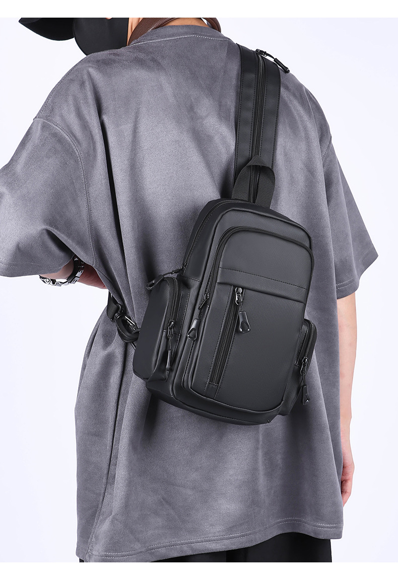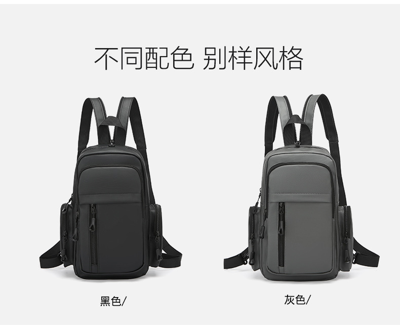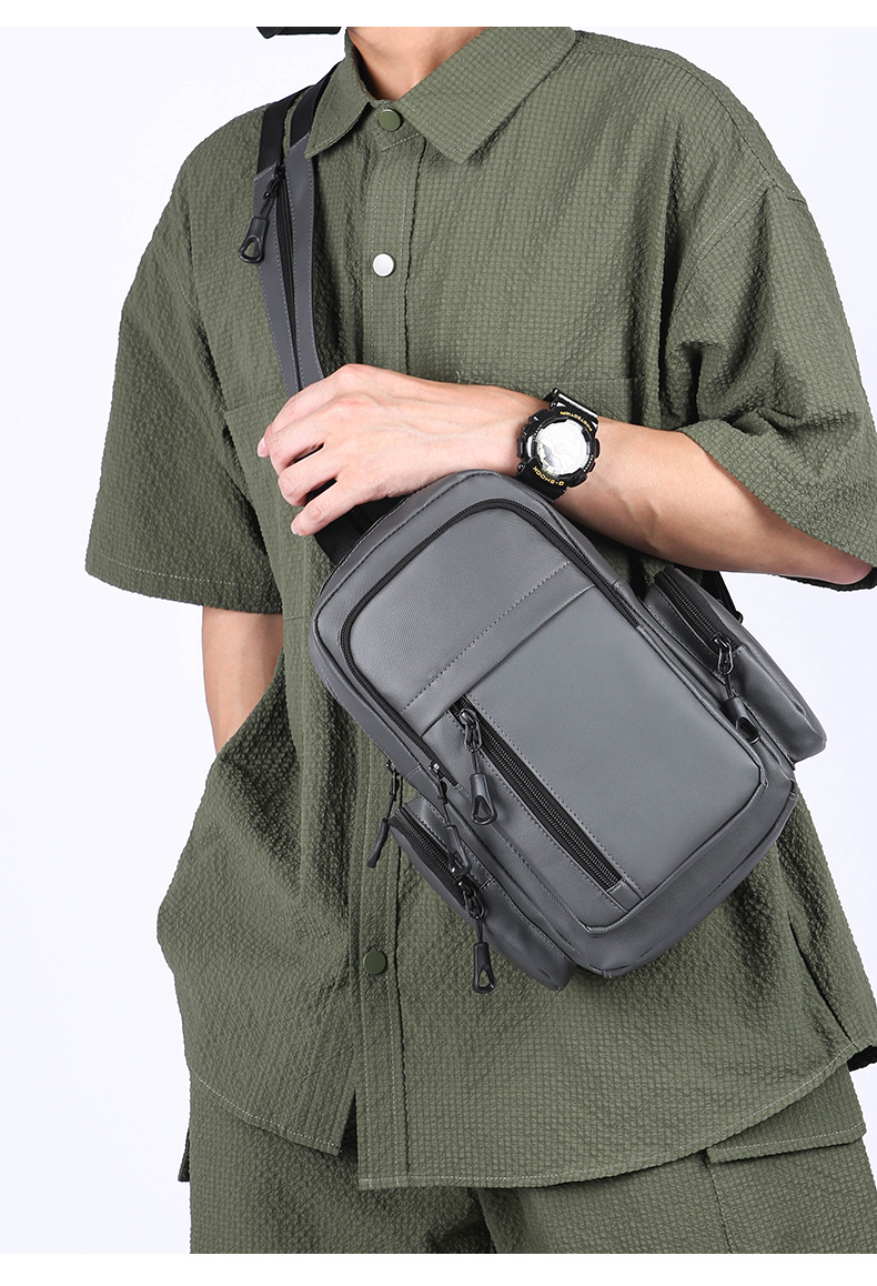 男士机能胸包男款防泼水斜挎包潮流邮差包户外多功能单肩斜背包