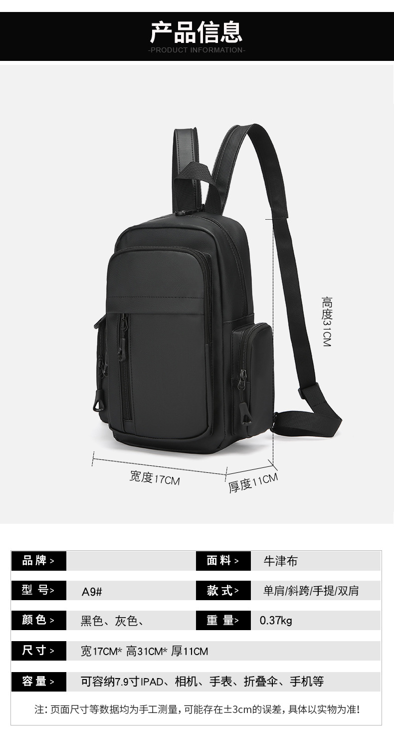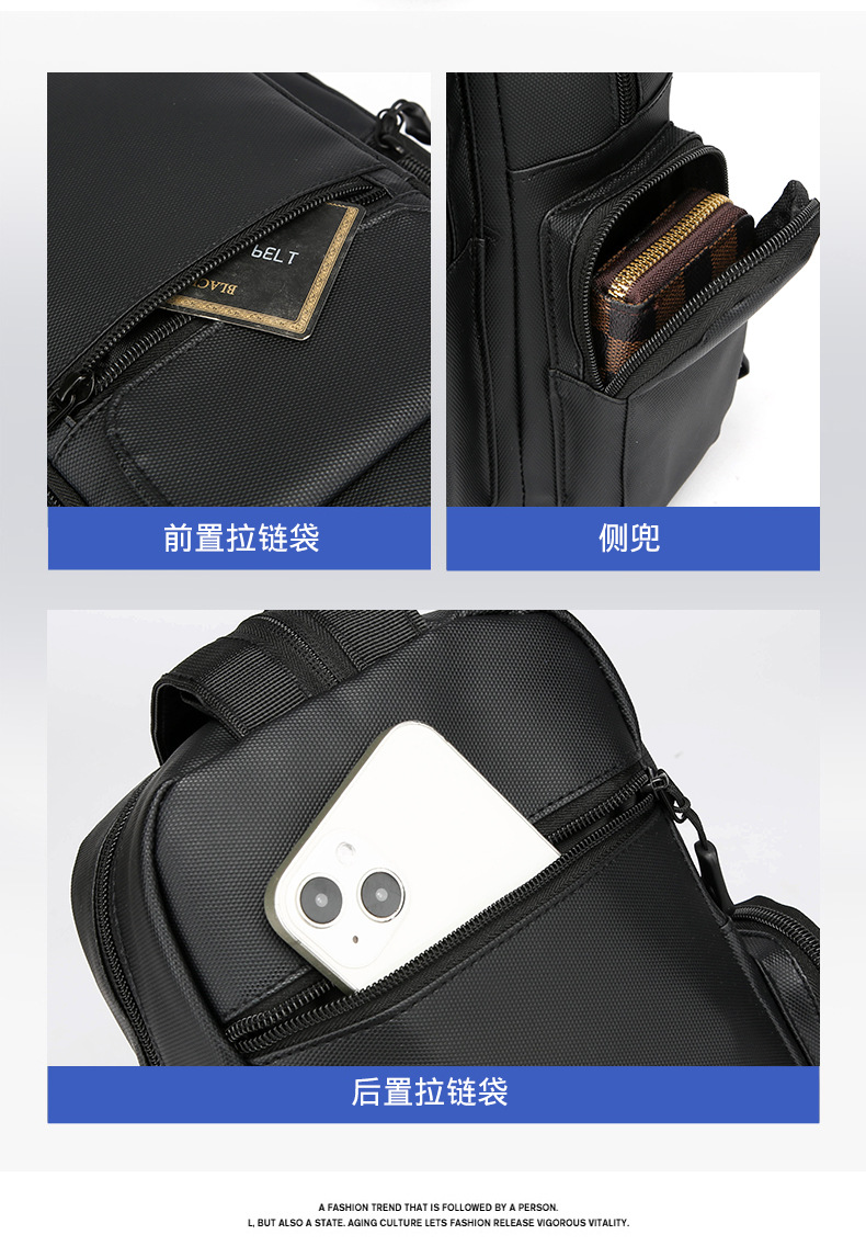 男士机能胸包男款防泼水斜挎包潮流邮差包户外多功能单肩斜背包 投诉