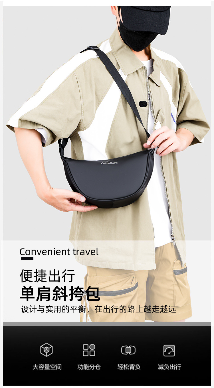 男士单肩包防水耐磨休闲风潮流高级质感斜挎包时尚简约小众饺子包