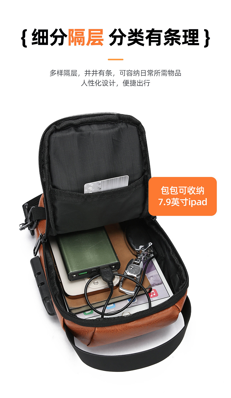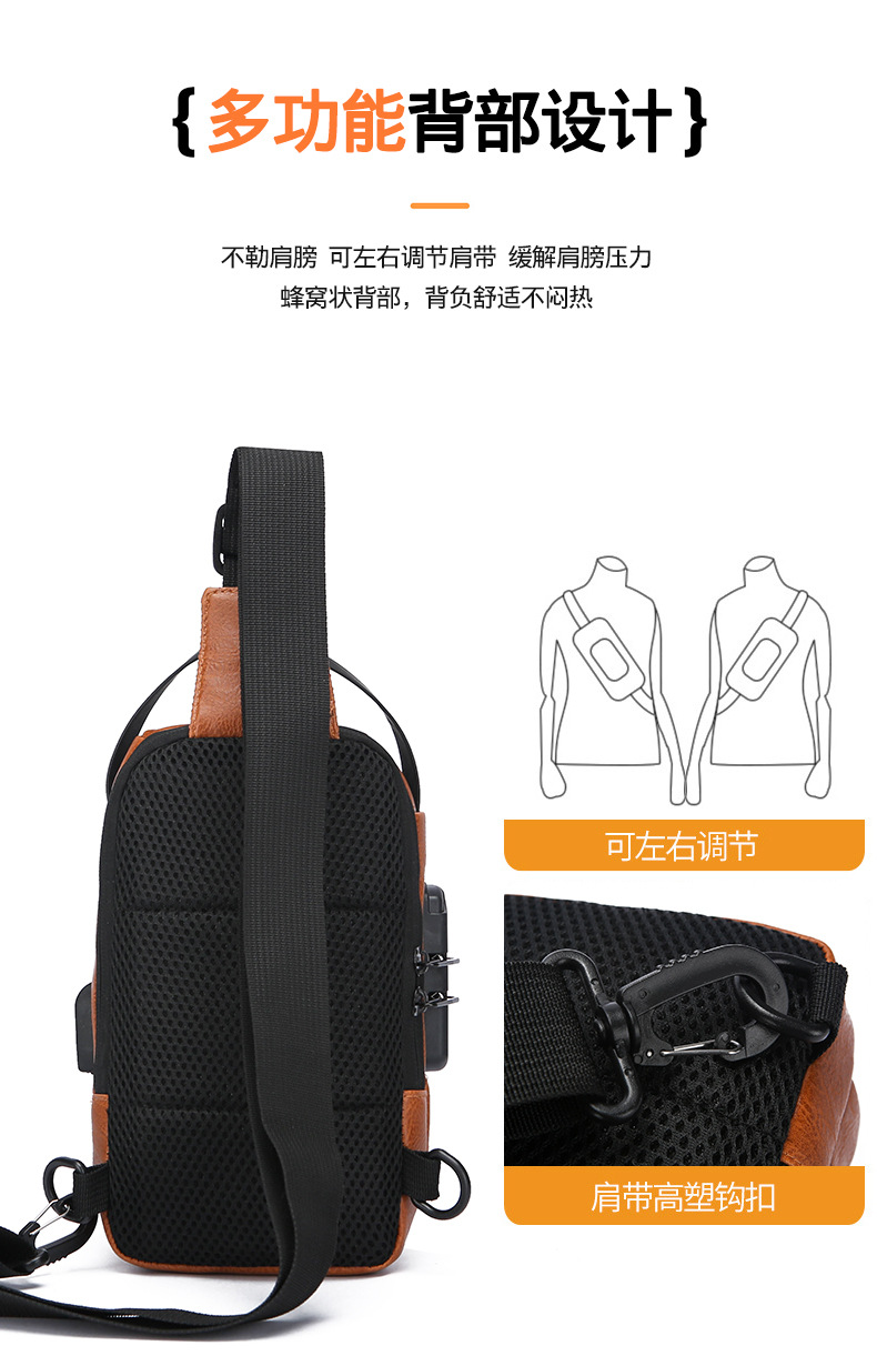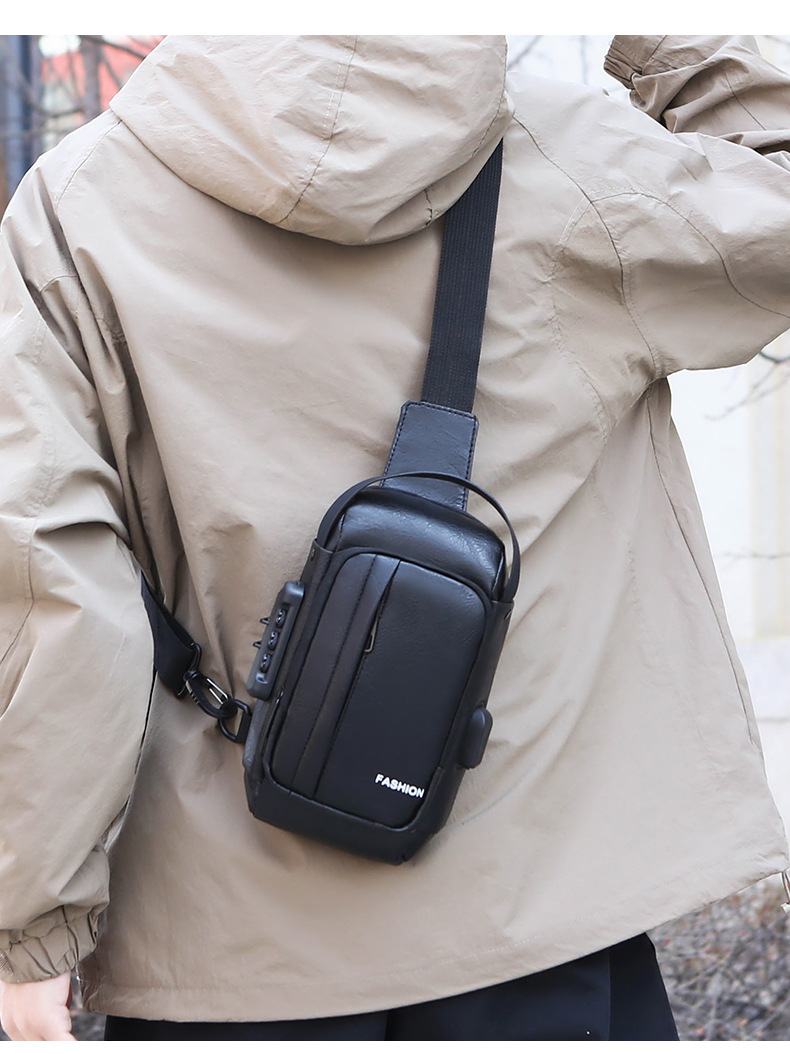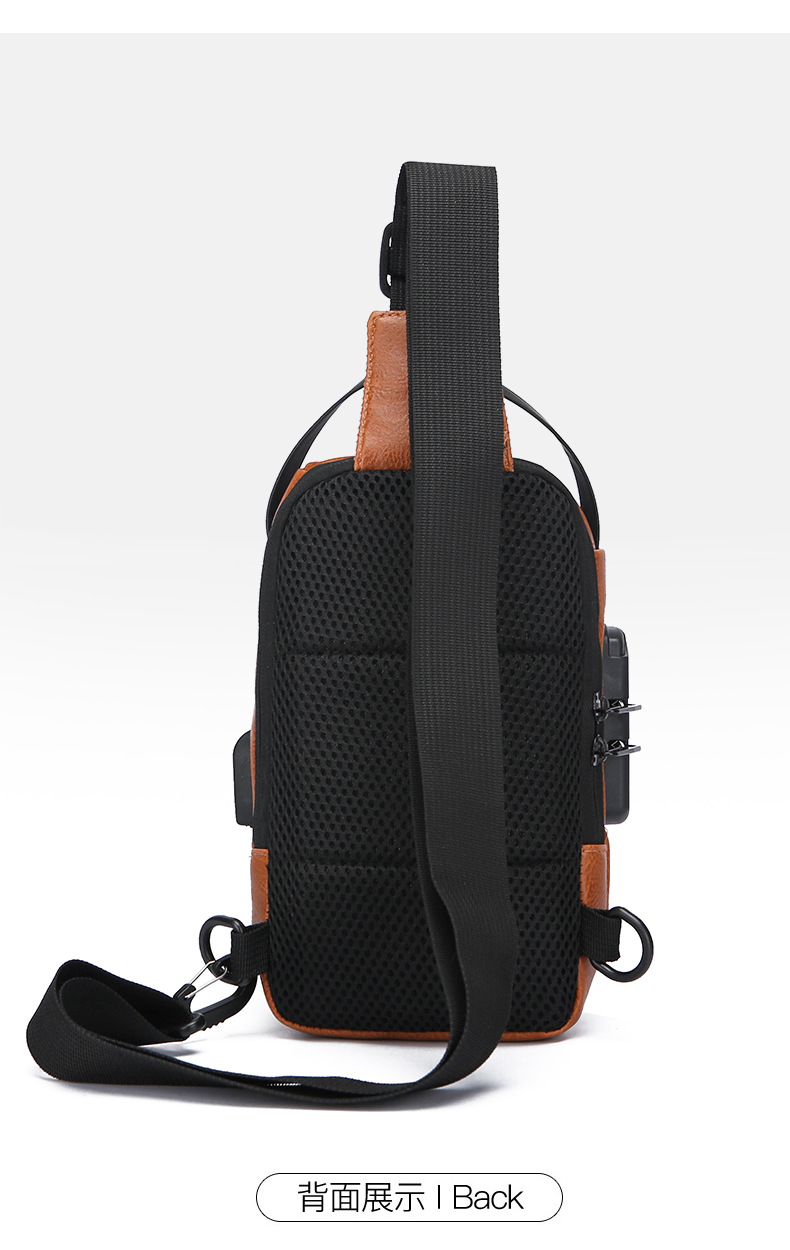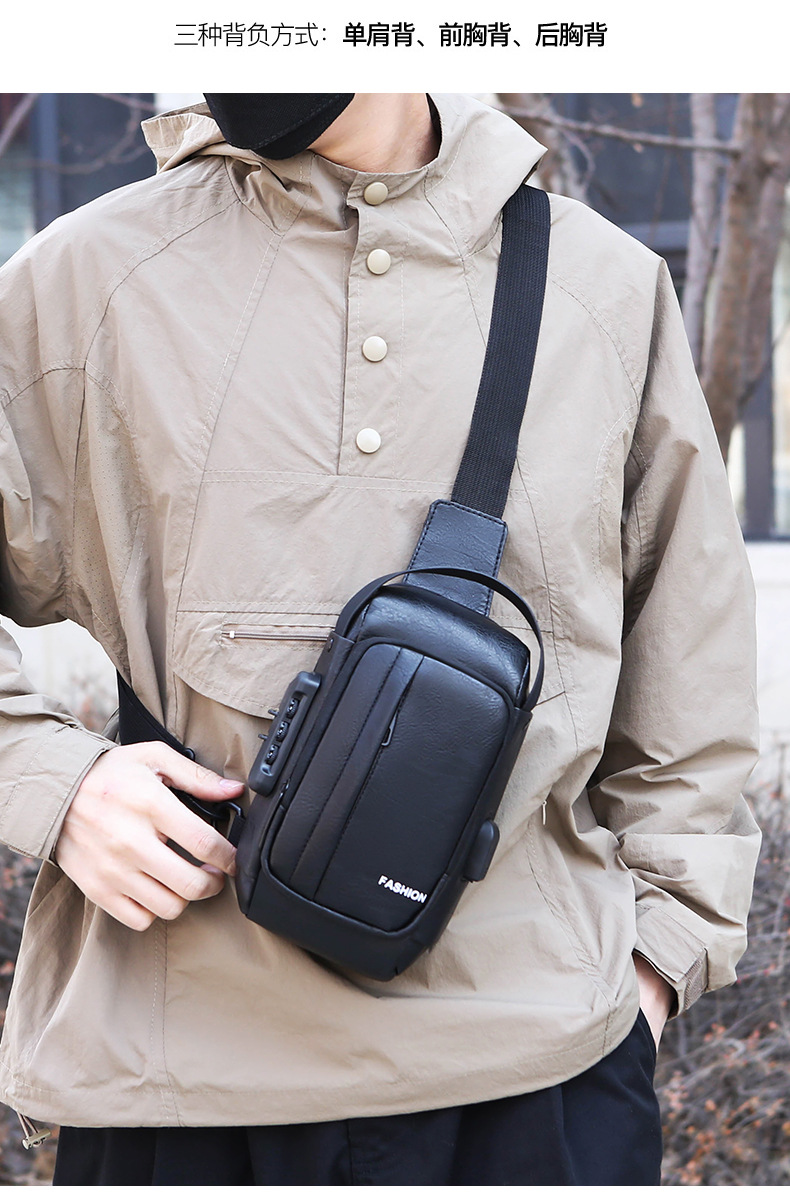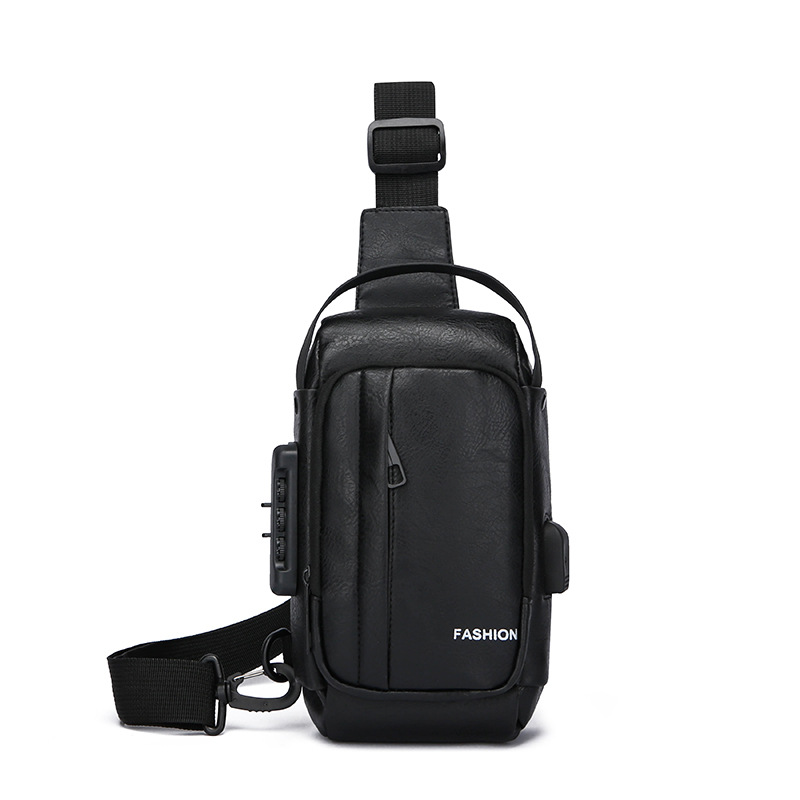 男款轻便usb接口密码锁防盗胸前包批发单肩斜挎包跨境外贸机车包