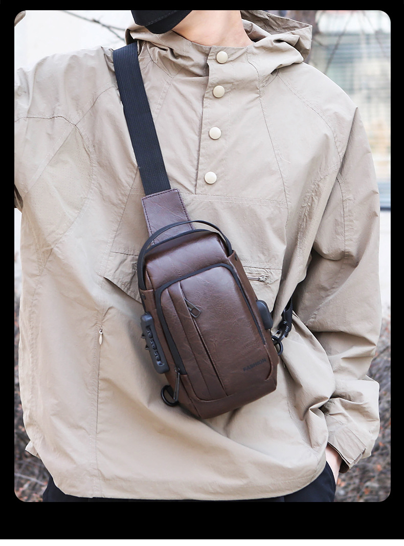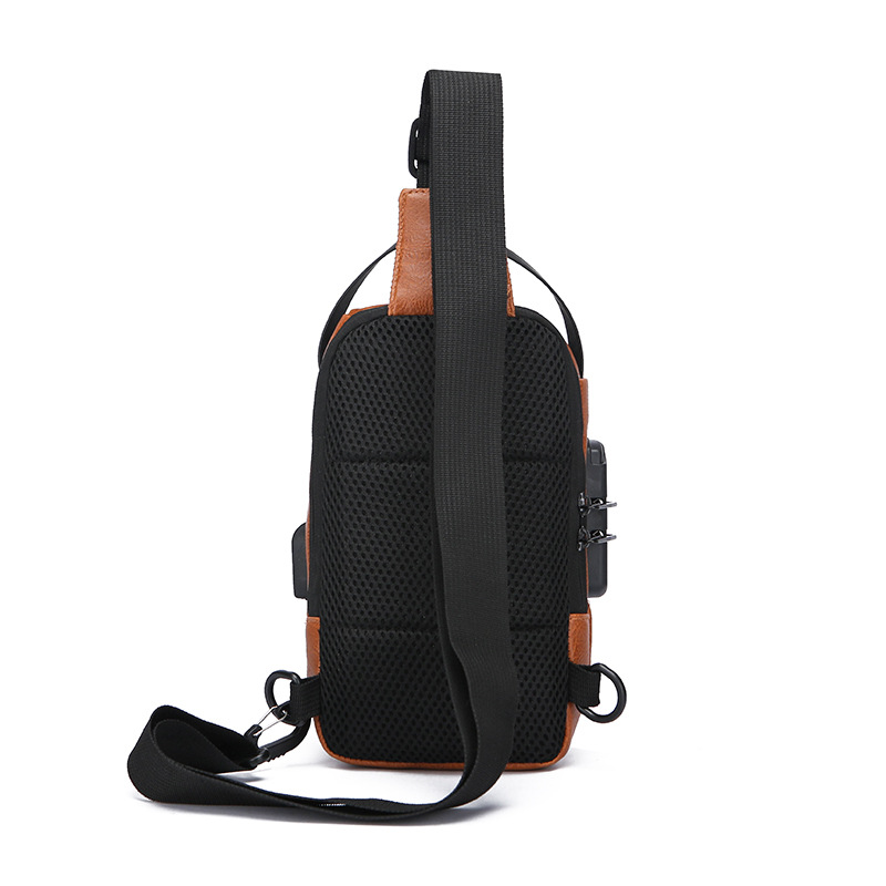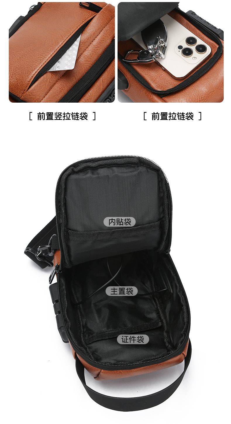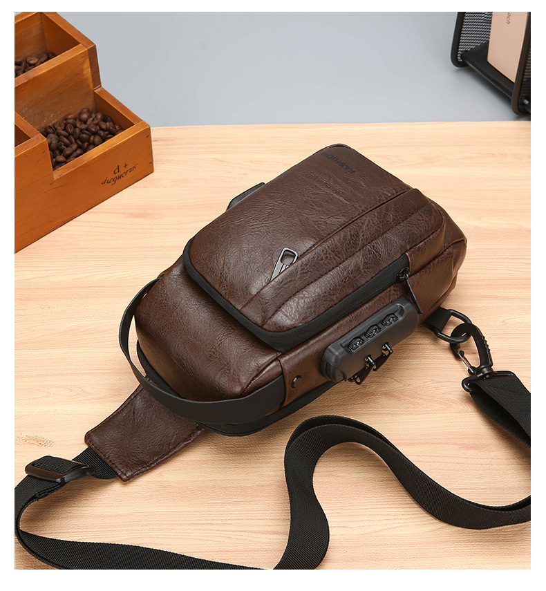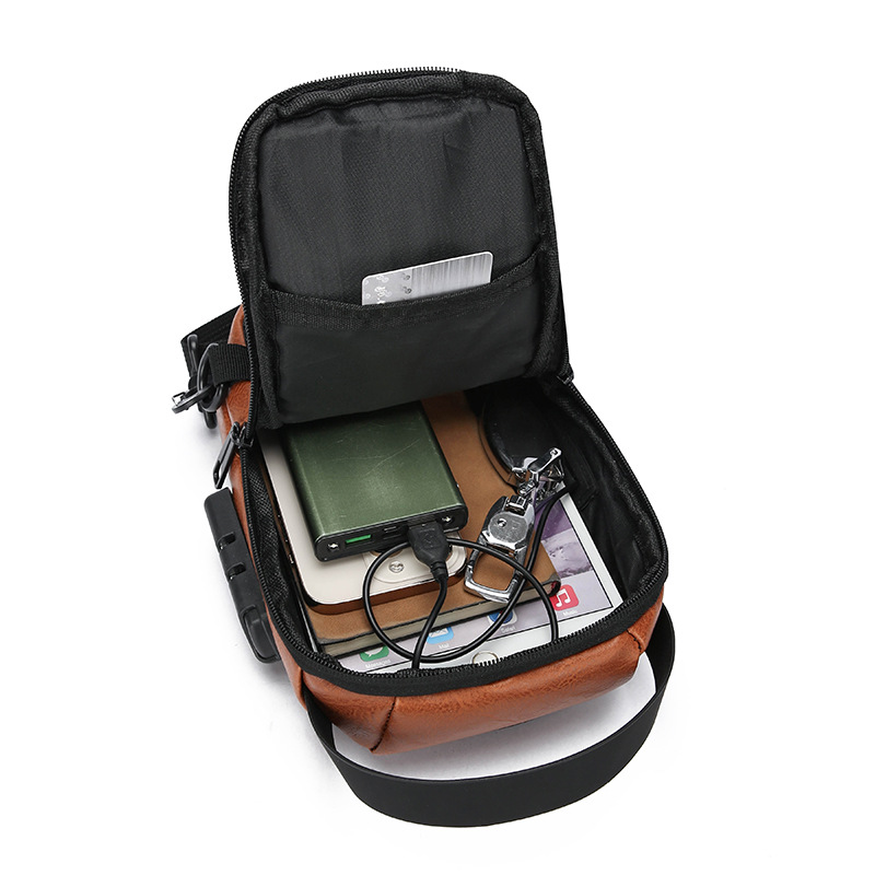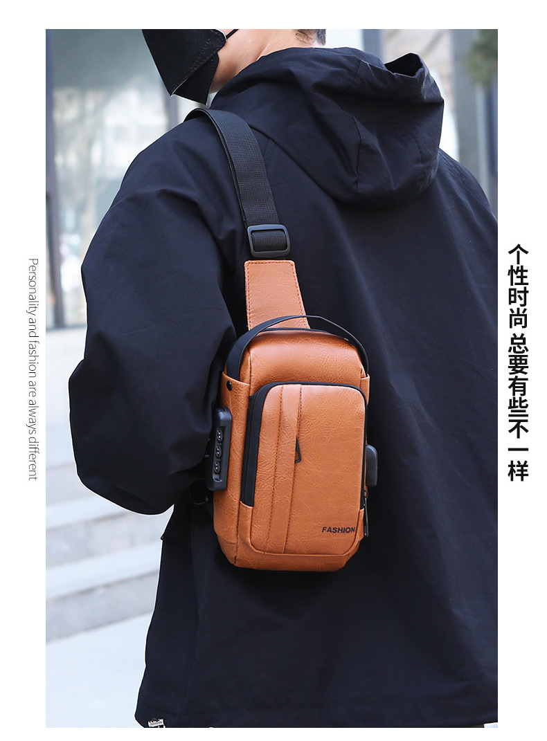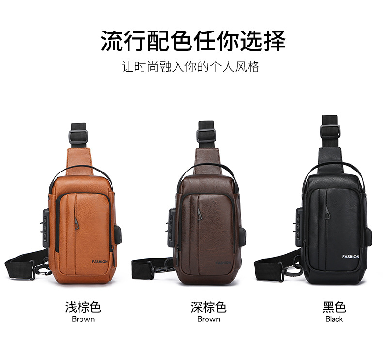 男款轻便usb接口密码锁防盗胸前包批发单肩斜挎包跨境外贸机车包
