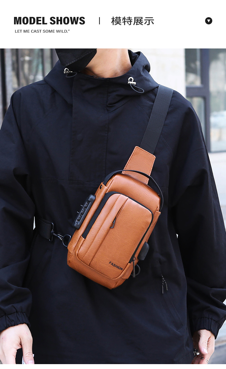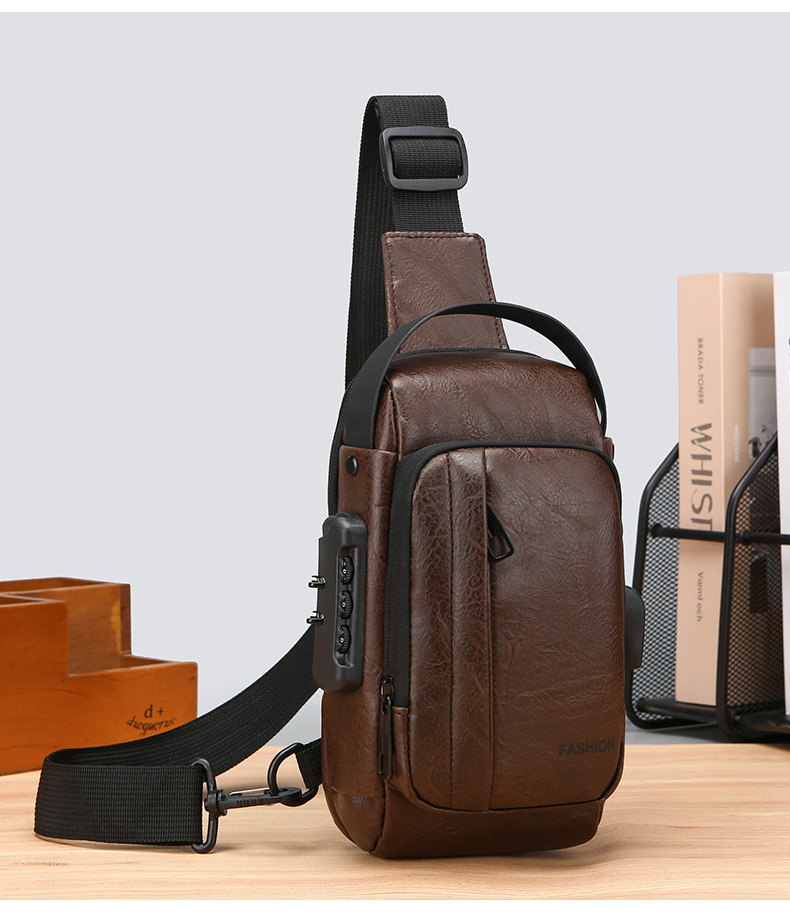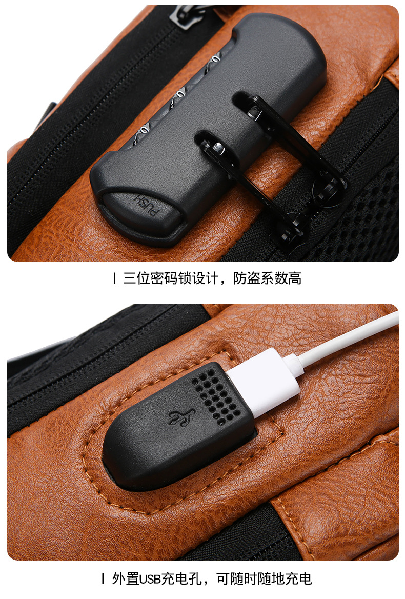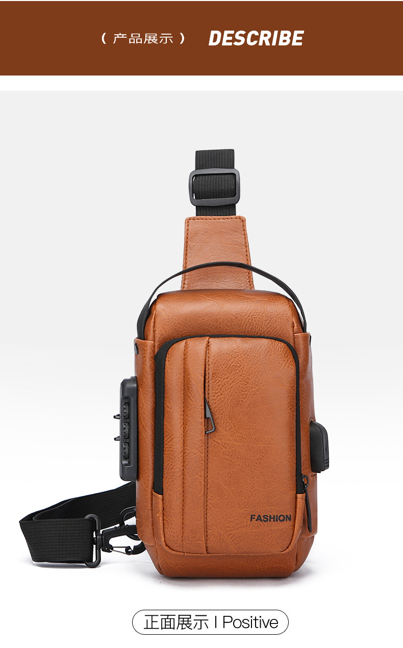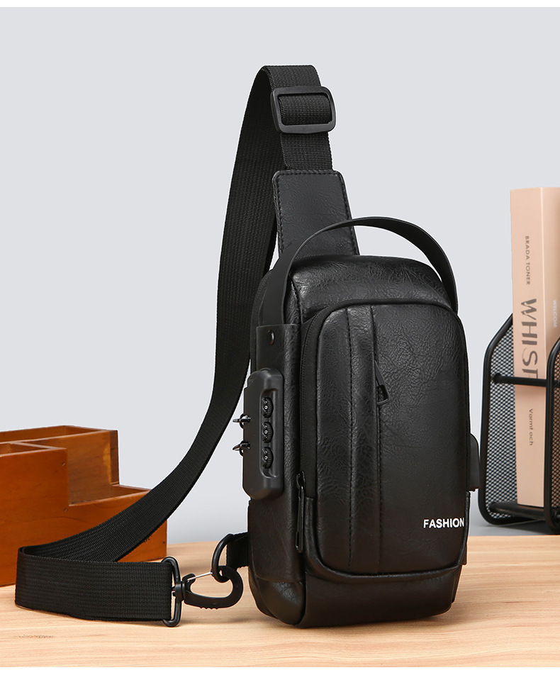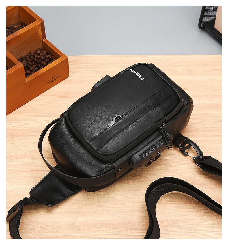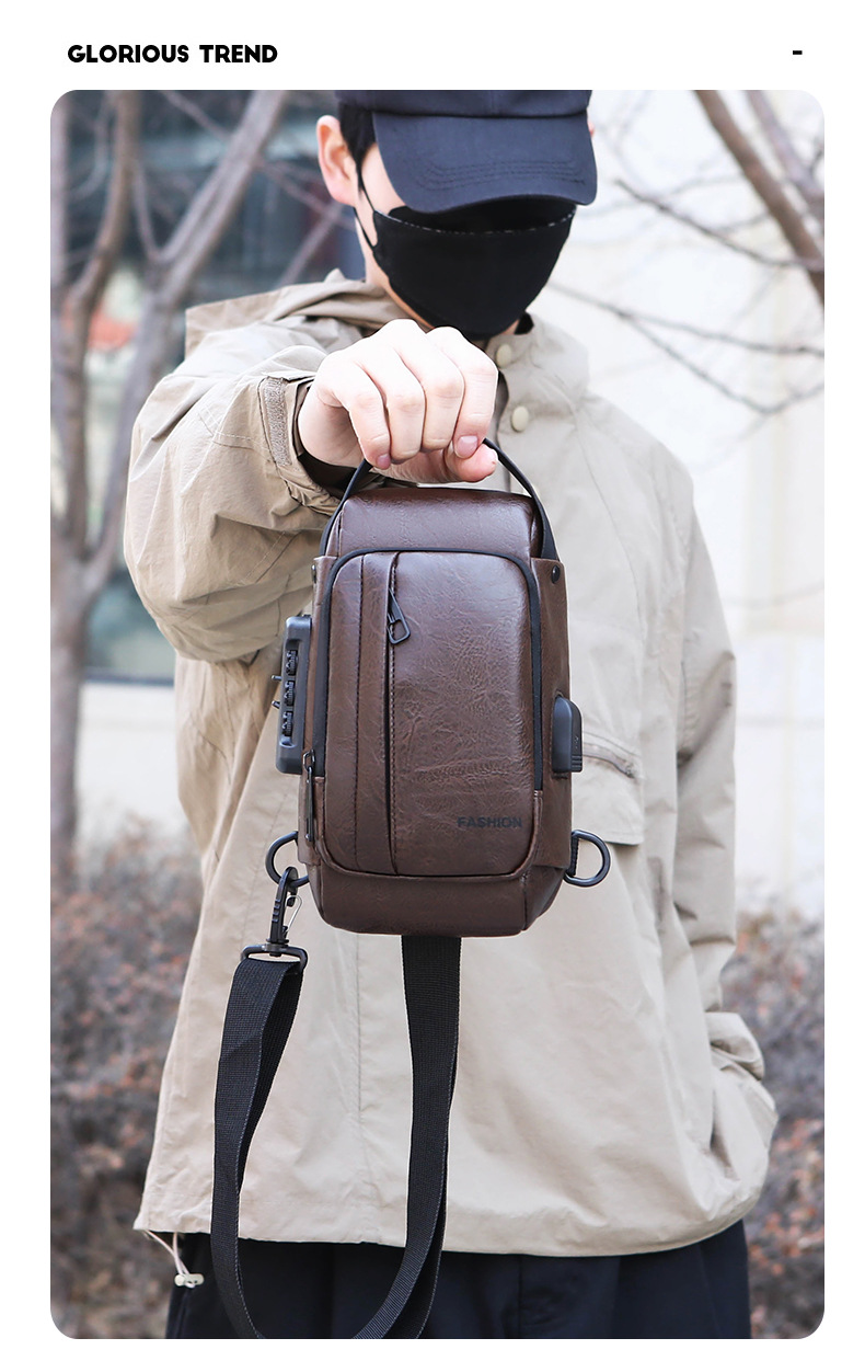 男款轻便usb接口密码锁防盗胸前包批发单肩斜挎包跨境外贸机车包