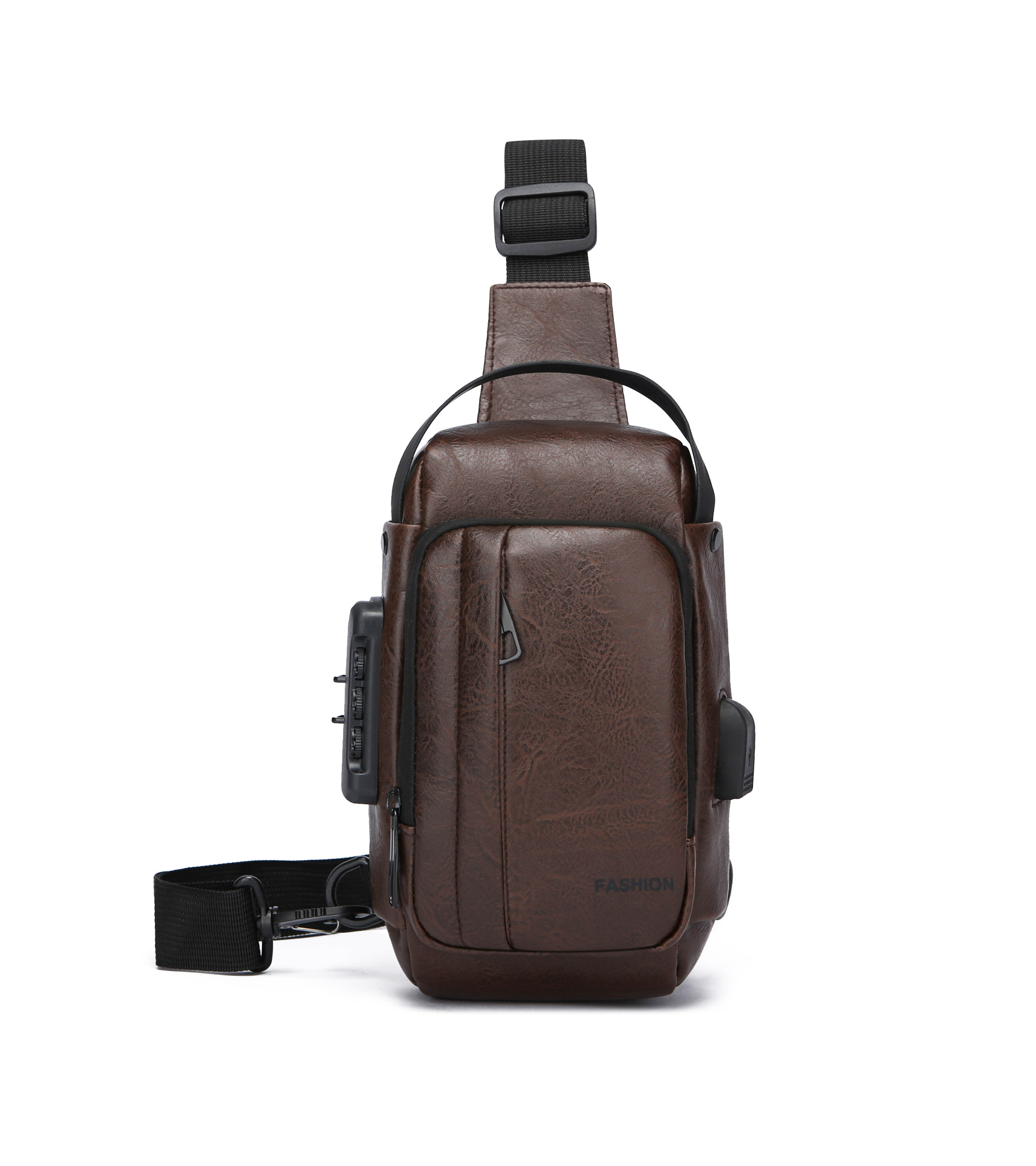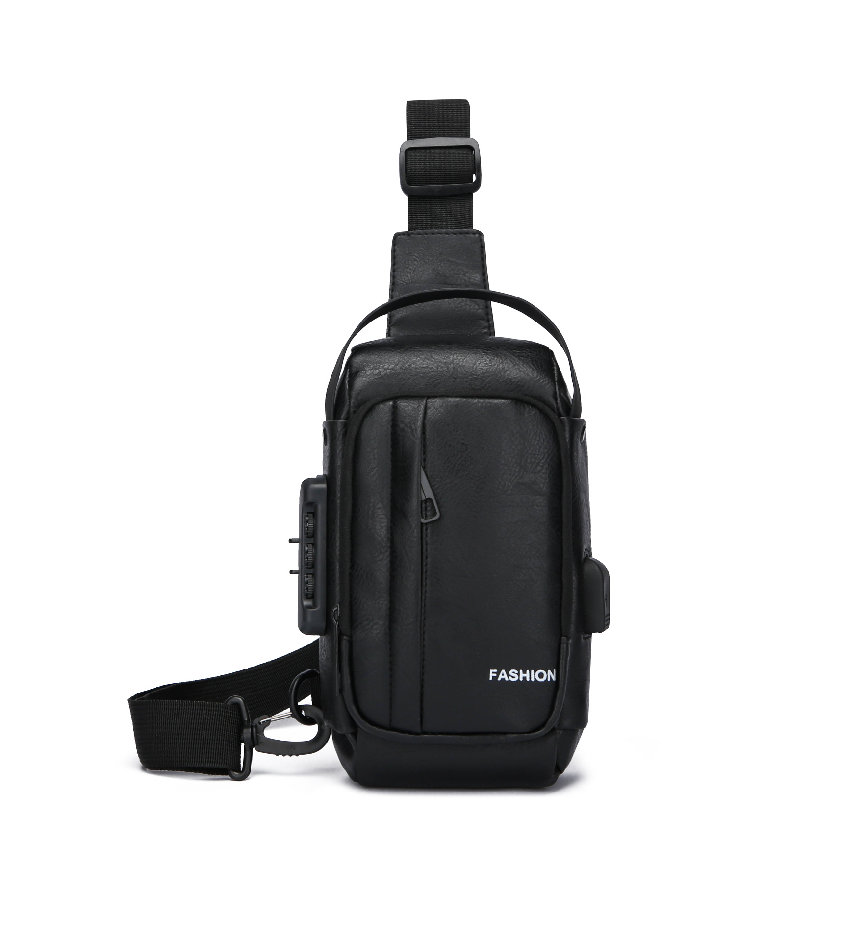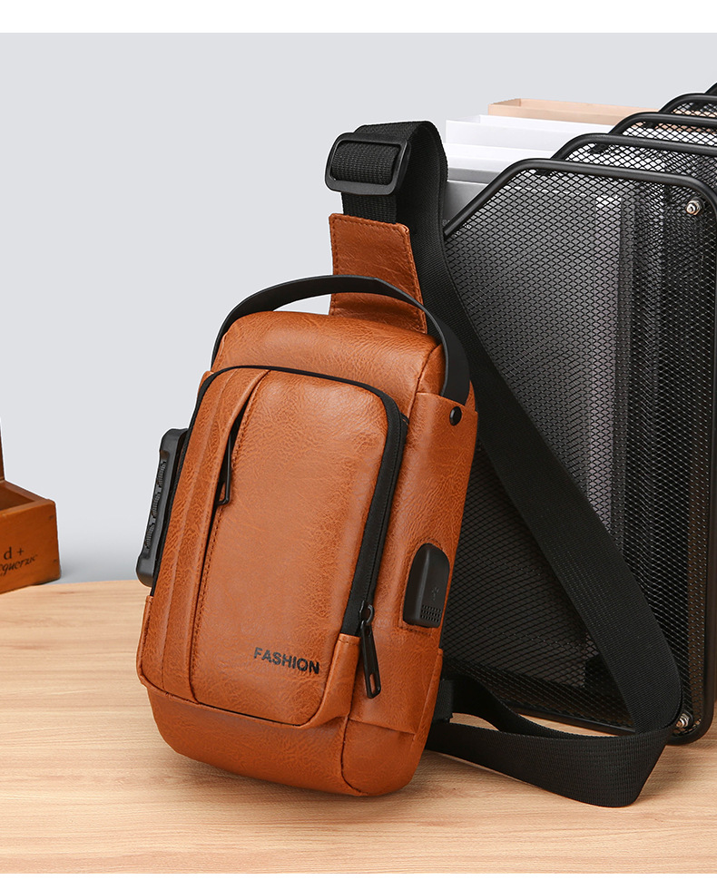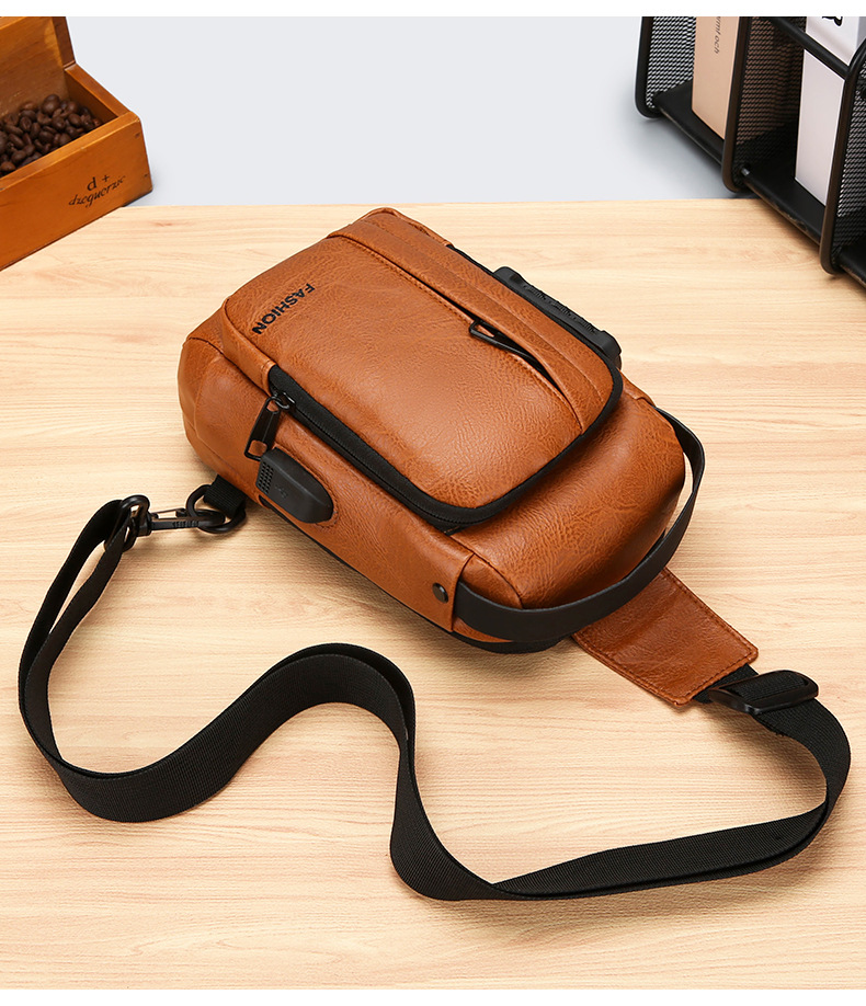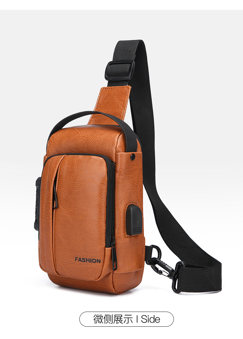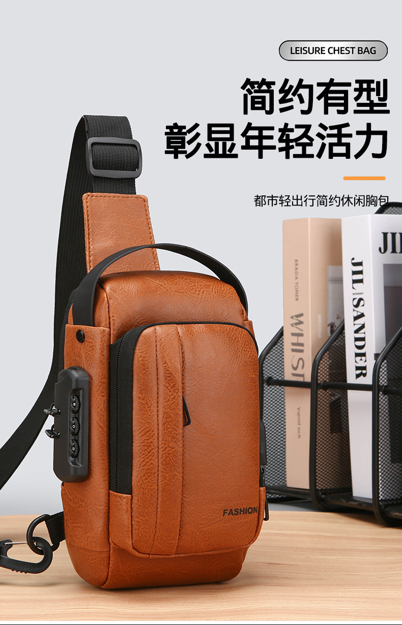 男款轻便usb接口密码锁防盗胸前包批发单肩斜挎包跨境外贸机车包