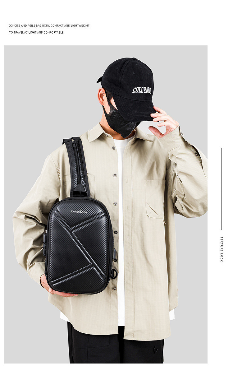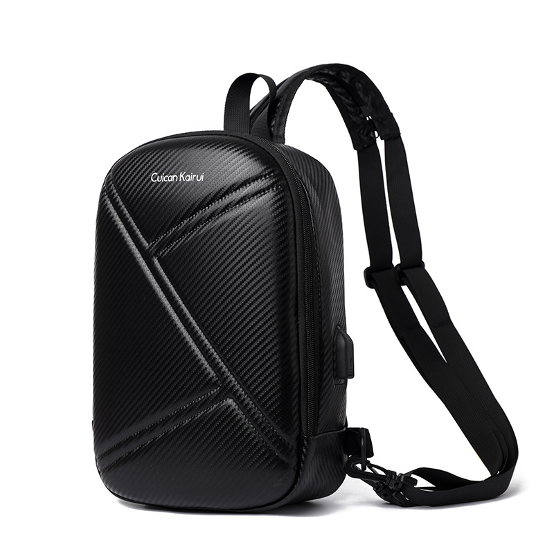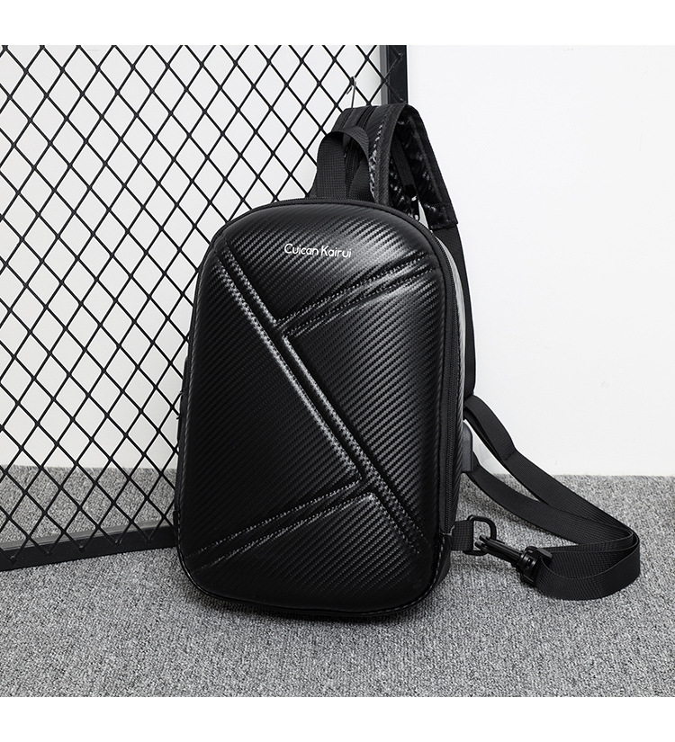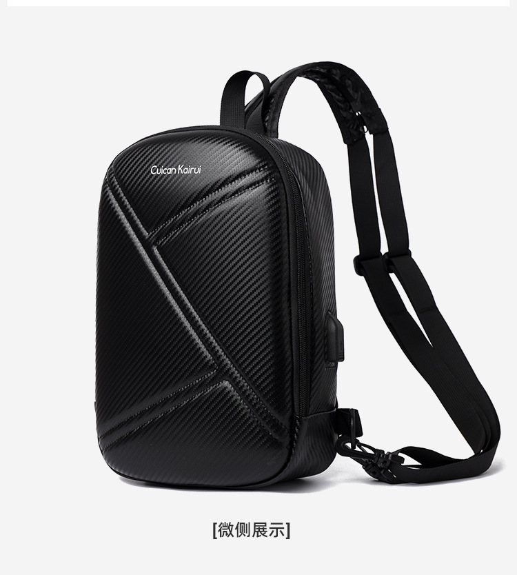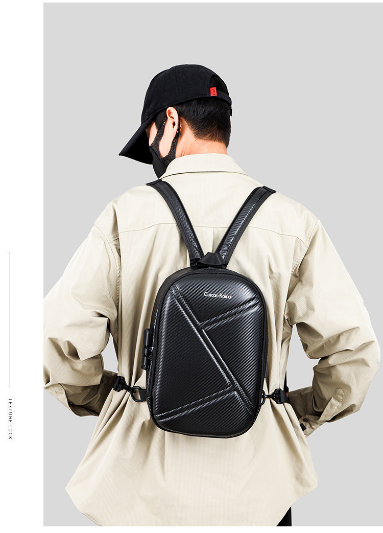 新款男士胸包大容量双肩包高端碳纤维机车包高级感硬壳单肩包骑行