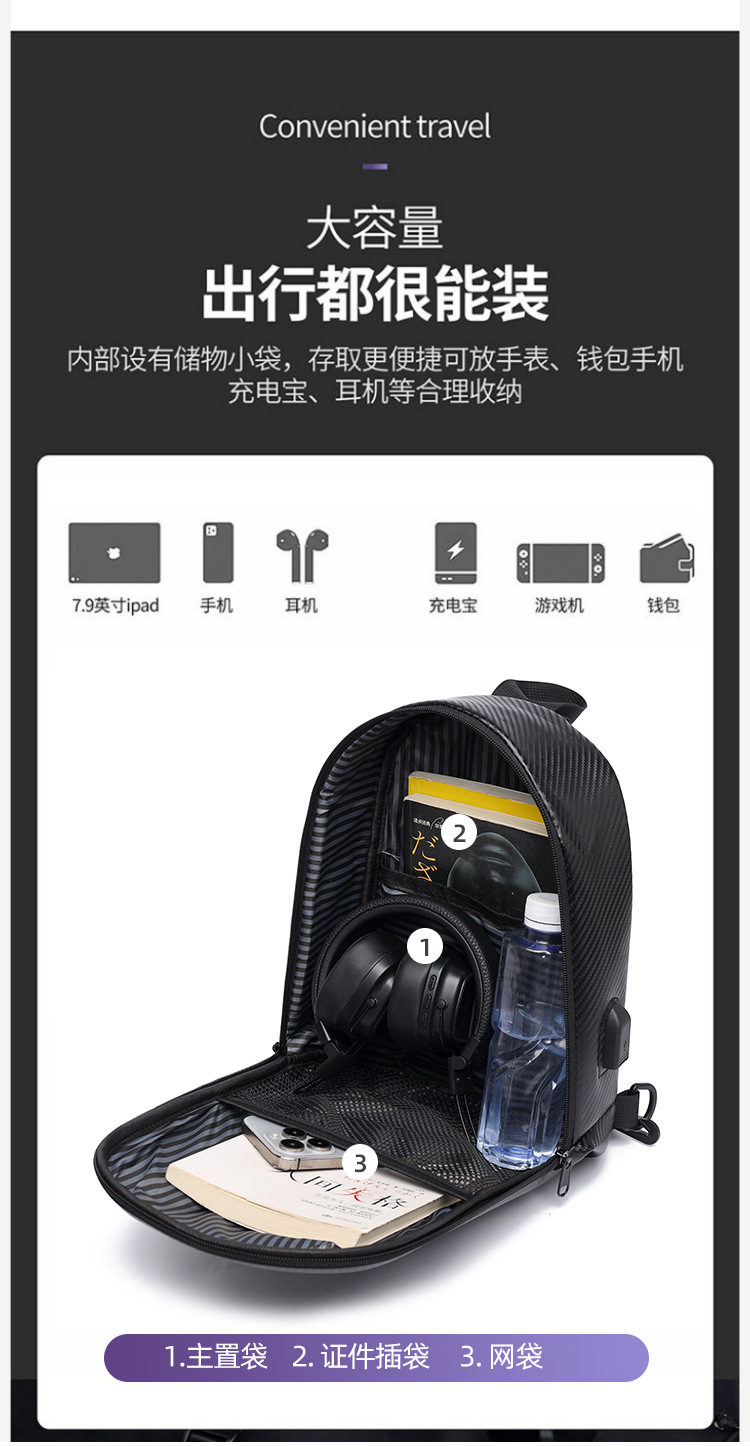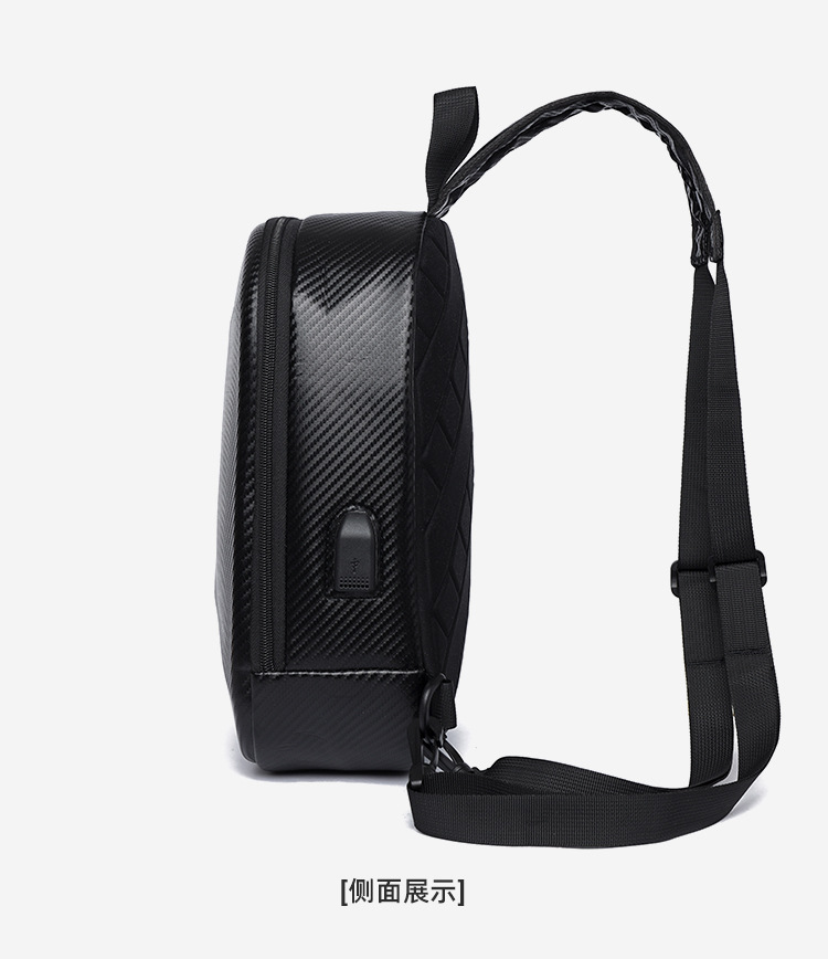 新款男士胸包大容量双肩包高端碳纤维机车包高级感硬壳单肩包骑行 投诉