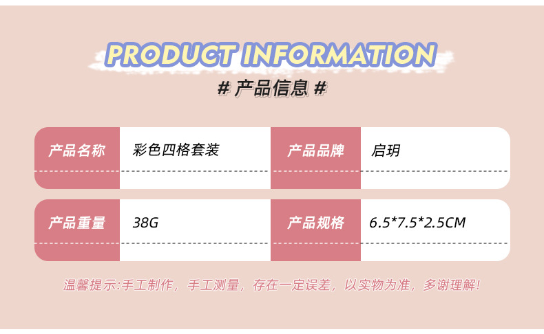 | 6.5*7.5*2.5CM四格套装 | ¥0 | 99535套可售 |