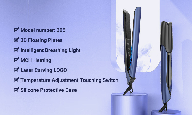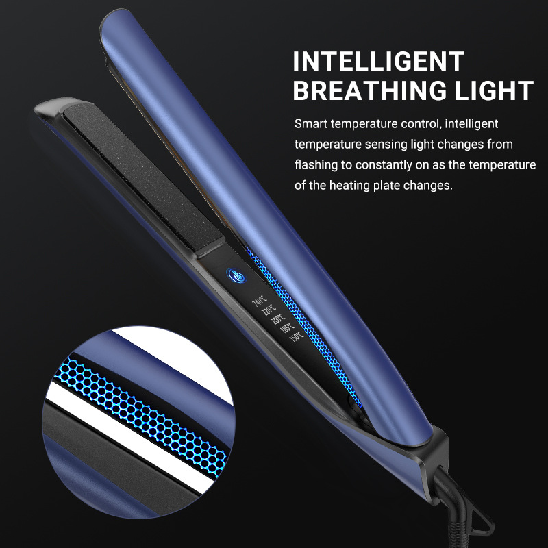 2024跨境新款快速升温直发器 带呼吸灯优美线条卷发夹板 WB野莓