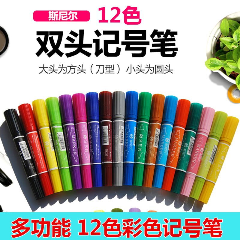 品牌: 斯尼尔 货号: 180 规格: 150 包装方式: 盒装 笔长: 125 笔芯颜色: 12色,18色,24色,30色 是否跨境出口专供货源: 否 产品特点: 双头 笔类型: 油性笔 重量: 0.5 kg/盒