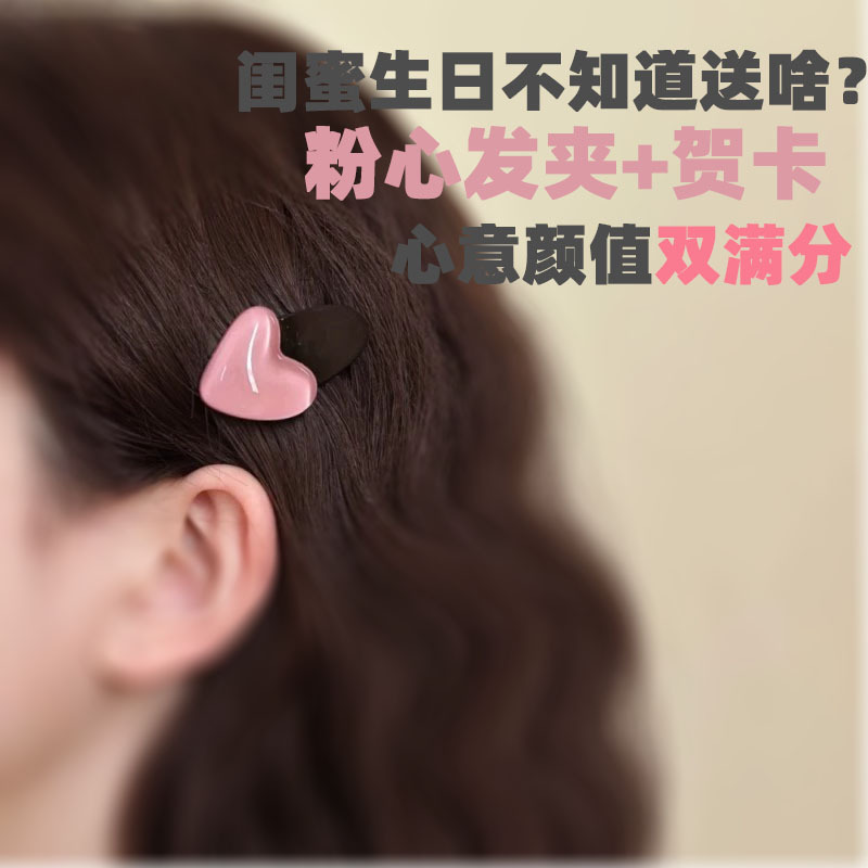 侧边粉色爱心发夹可爱女边夹发饰饰品轻奢小众高级感摆摊配件新款 English | 投诉