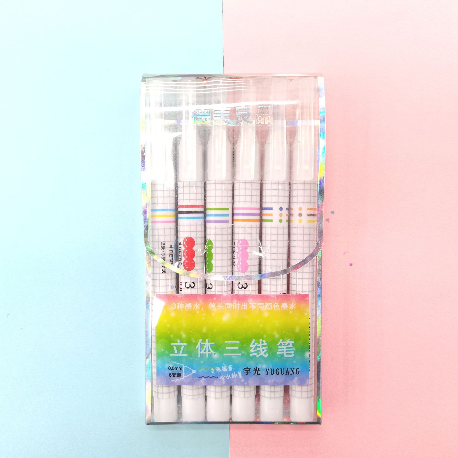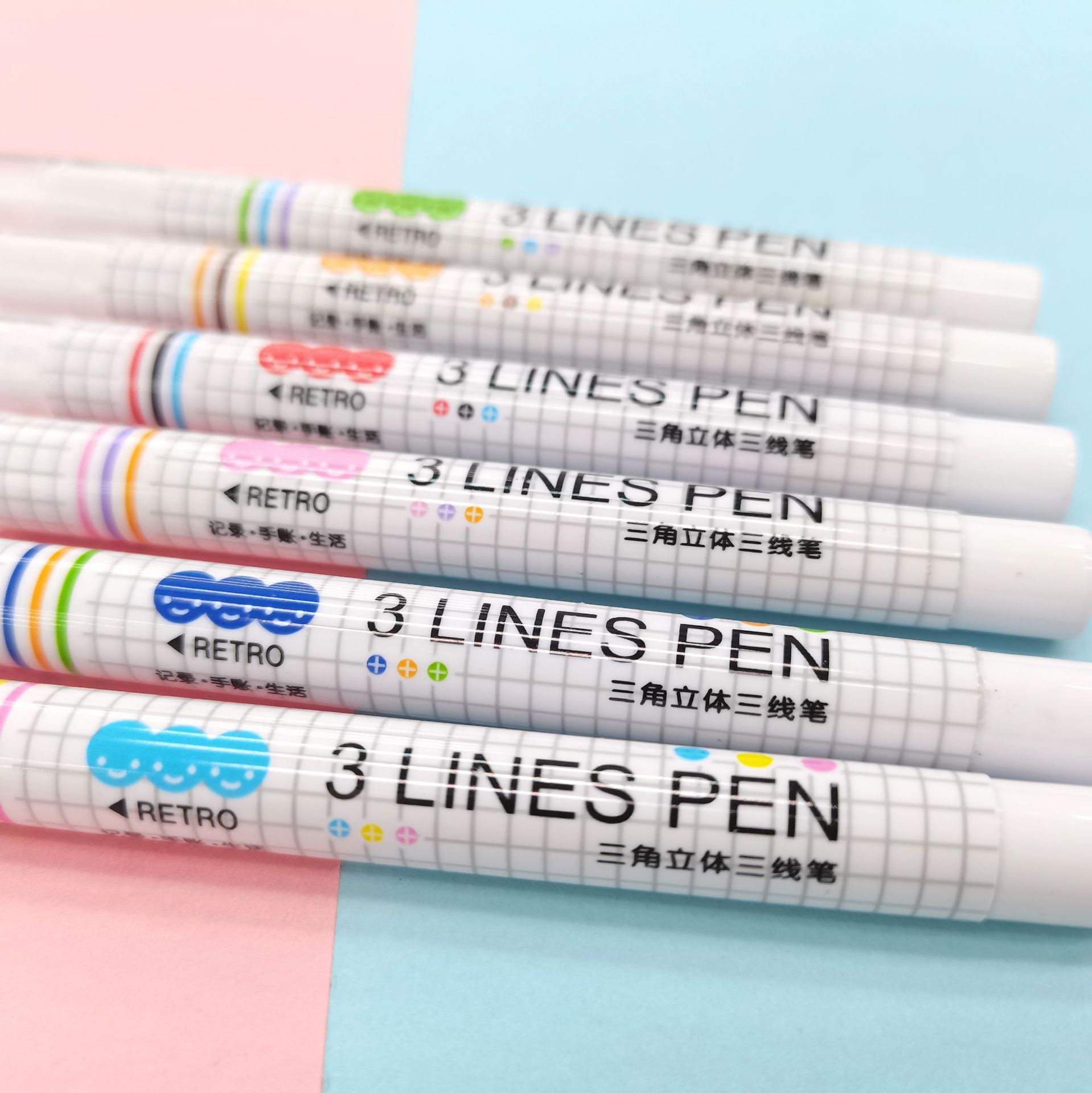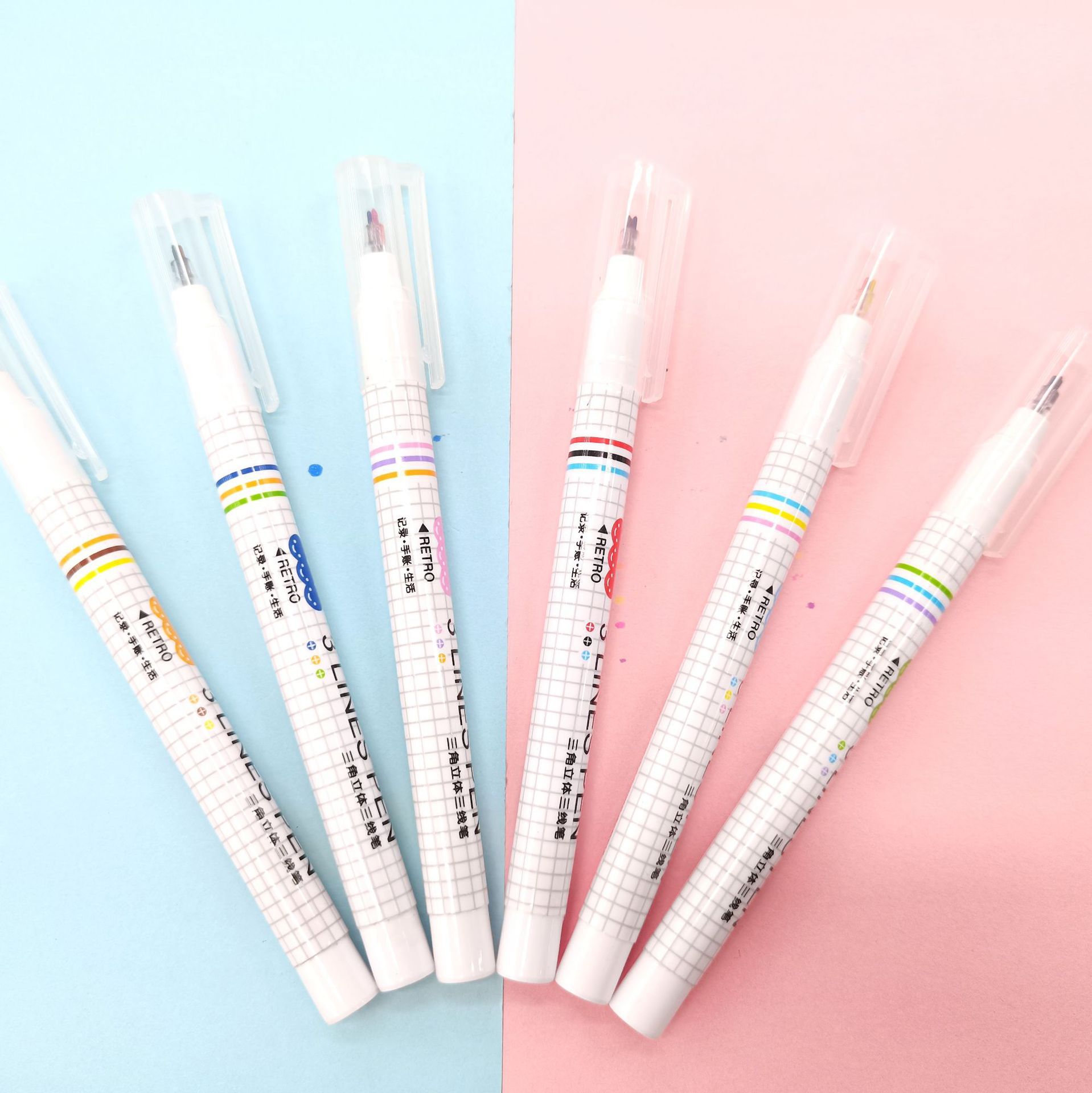 立体三线笔6支装彩笔三角立体笔学生创意文具手账笔文具礼品批发 English | 投诉