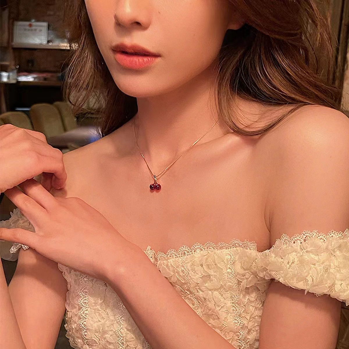 韩版红色樱桃项链ins小众设计颈链韩风高颜值闺蜜饰品毛衣项链女 English | 投诉
