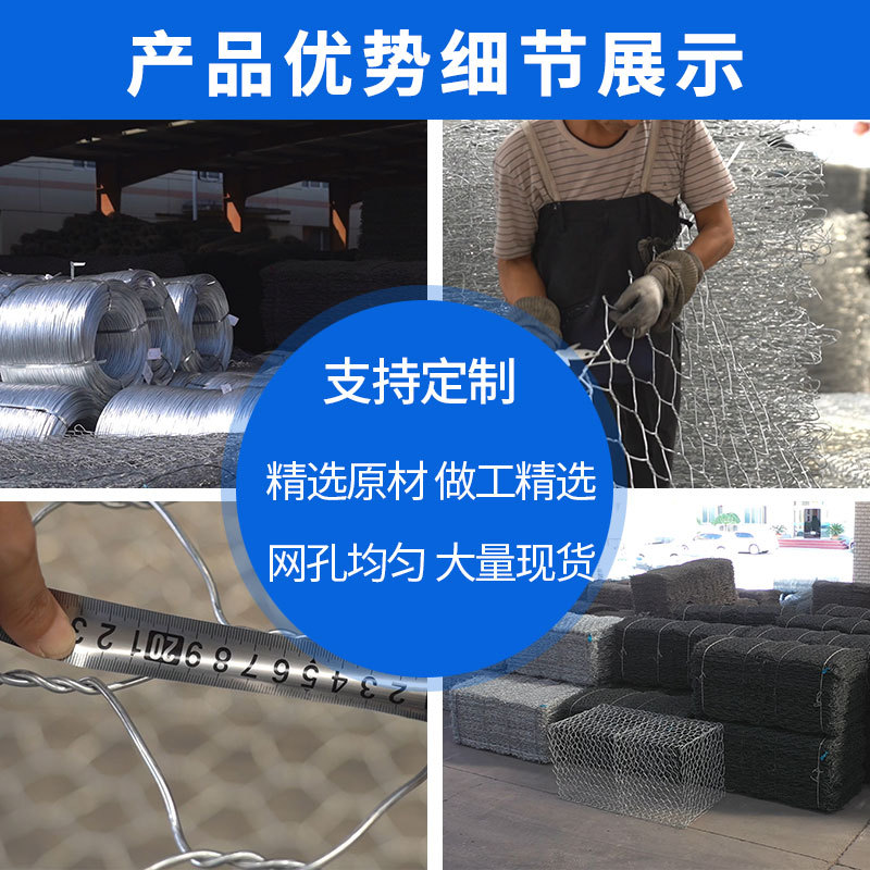 定制雷诺护垫锌石笼网格宾网防洪护坡铅丝笼石笼网挡墙格宾石笼网