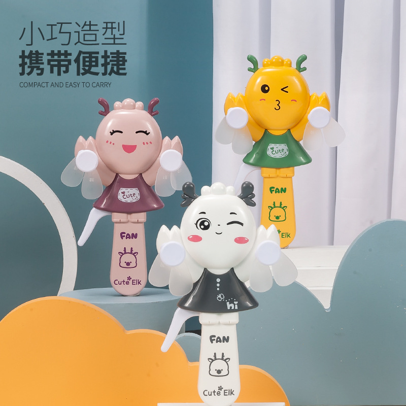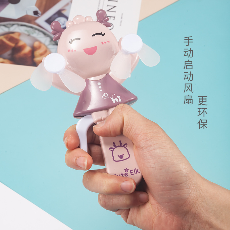 2022新款手压小风扇便携式跨境批发儿童卡通萌鹿双头手持风扇