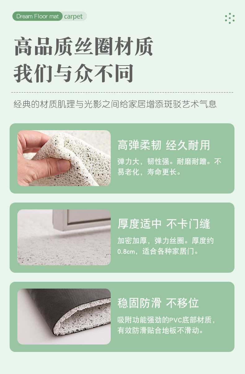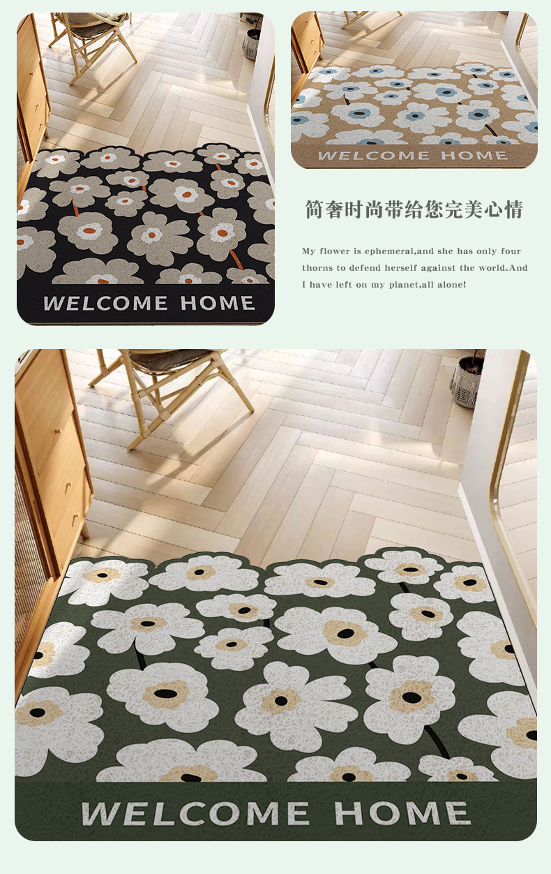 • 那集家居主营室内门垫,浴室垫,厨房垫,客卧地毯,室外镂空垫,瑜伽垫,儿童爬行垫,穆斯林朝拜地垫等各品类地垫。欢迎新老客户来店咨询洽谈。