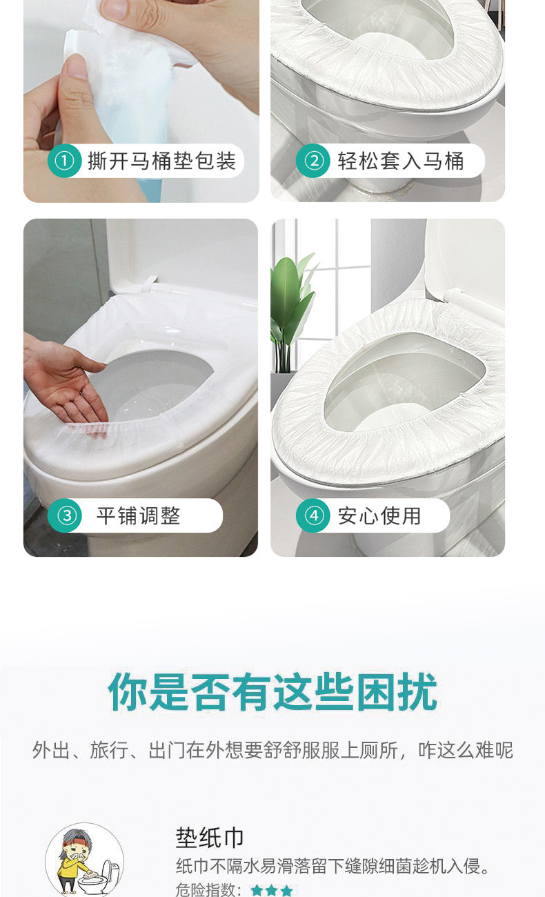 一次性马桶垫便携式旅游住酒店防水加厚马桶套孕产妇坐便套独立装 English | 投诉