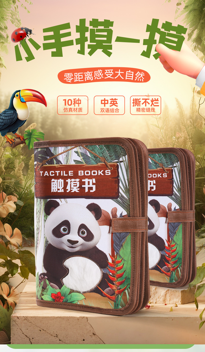 【包邮】新款熊猫幼儿启蒙早教仿真动物触摸书撕不烂儿童益智绘本 English | 投诉