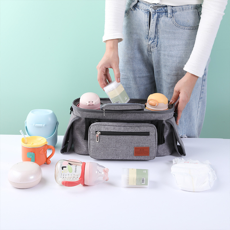 2021新款跨境婴儿车挂袋遛娃神器铝箔保温奶瓶纸尿片收纳袋妈咪包 English | 投诉