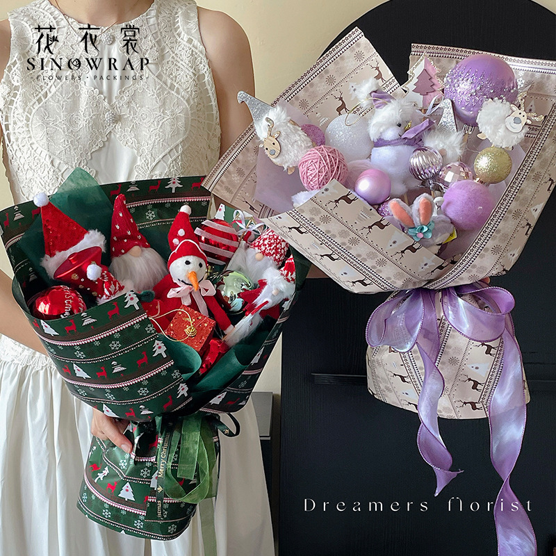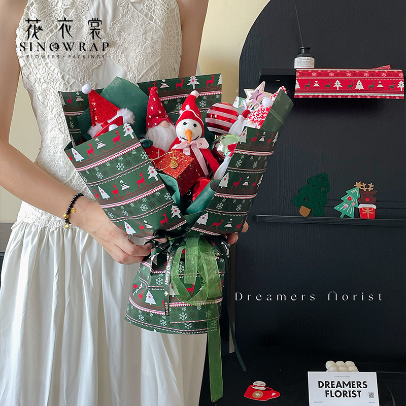 花衣裳圣诞节包装纸防水印花欧雅纸圣诞花束礼物礼品包装材料 投诉