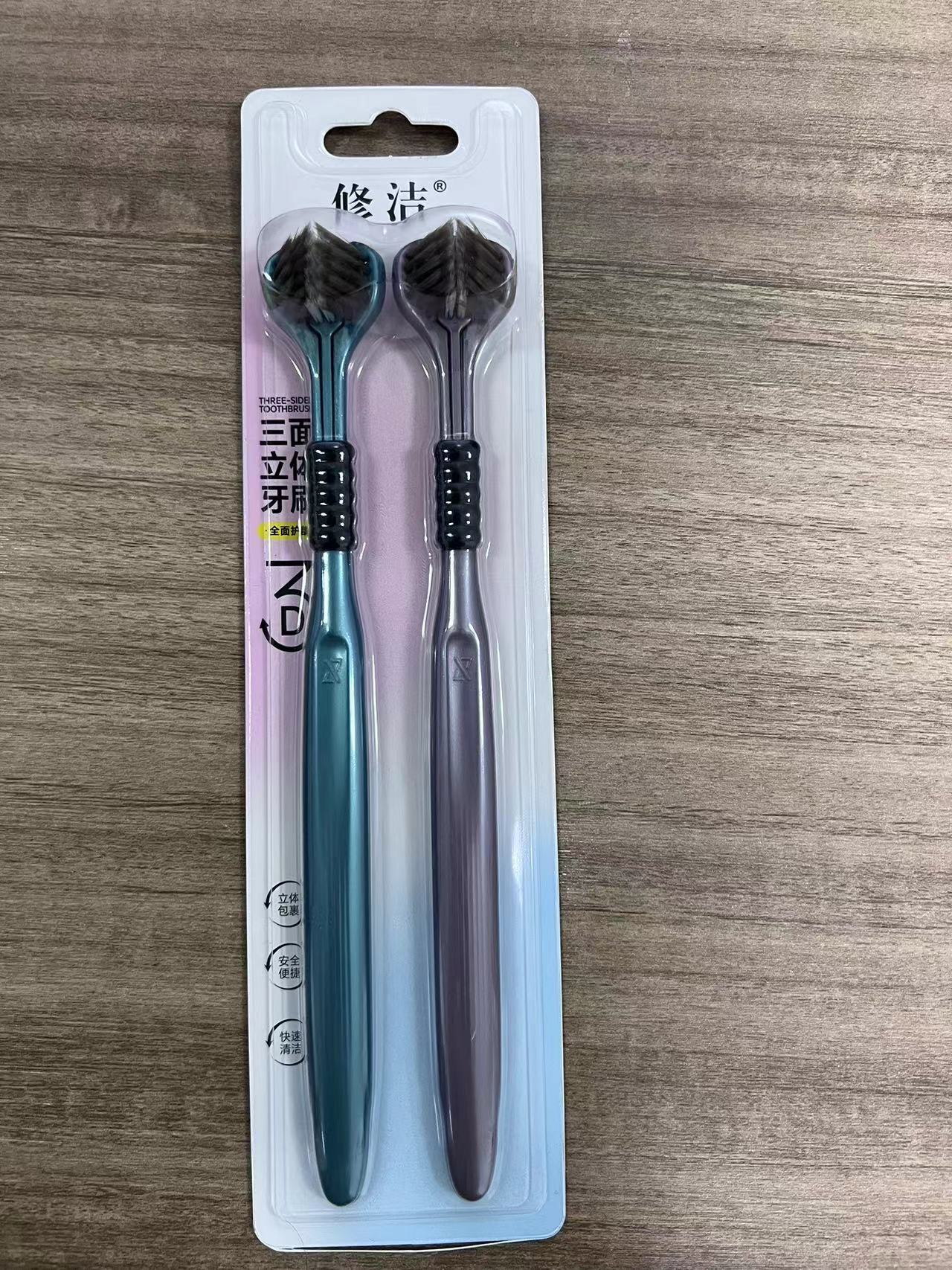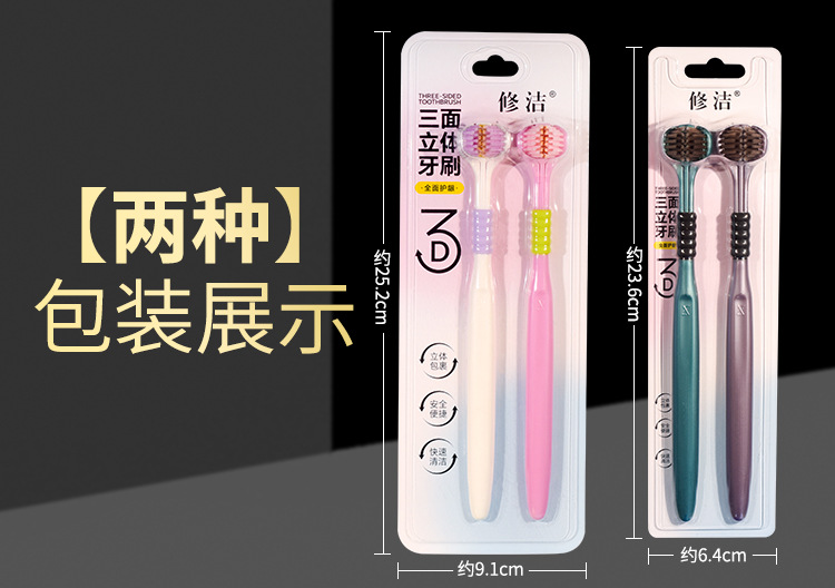 修洁三面牙刷软毛家用宽头护龈三头成人牙刷家用工厂直售批发代发