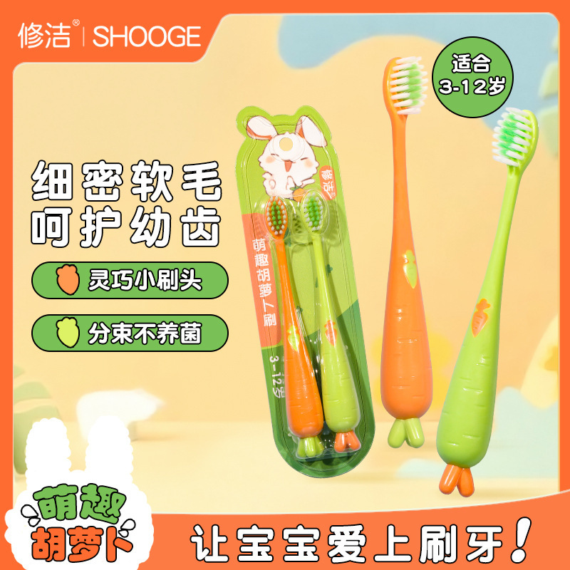 修洁儿童软毛牙刷3到12岁胡萝卜胖手柄卡通两支装家用代发批发 English | 投诉