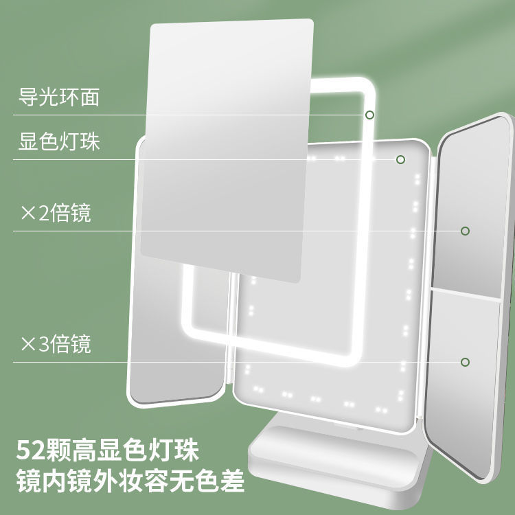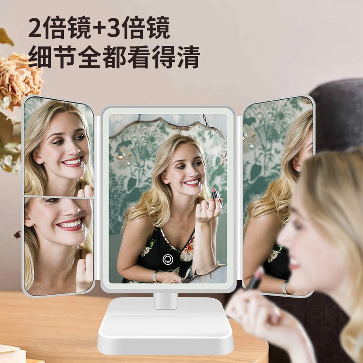 高档双开门三折LED补光灯化妆镜