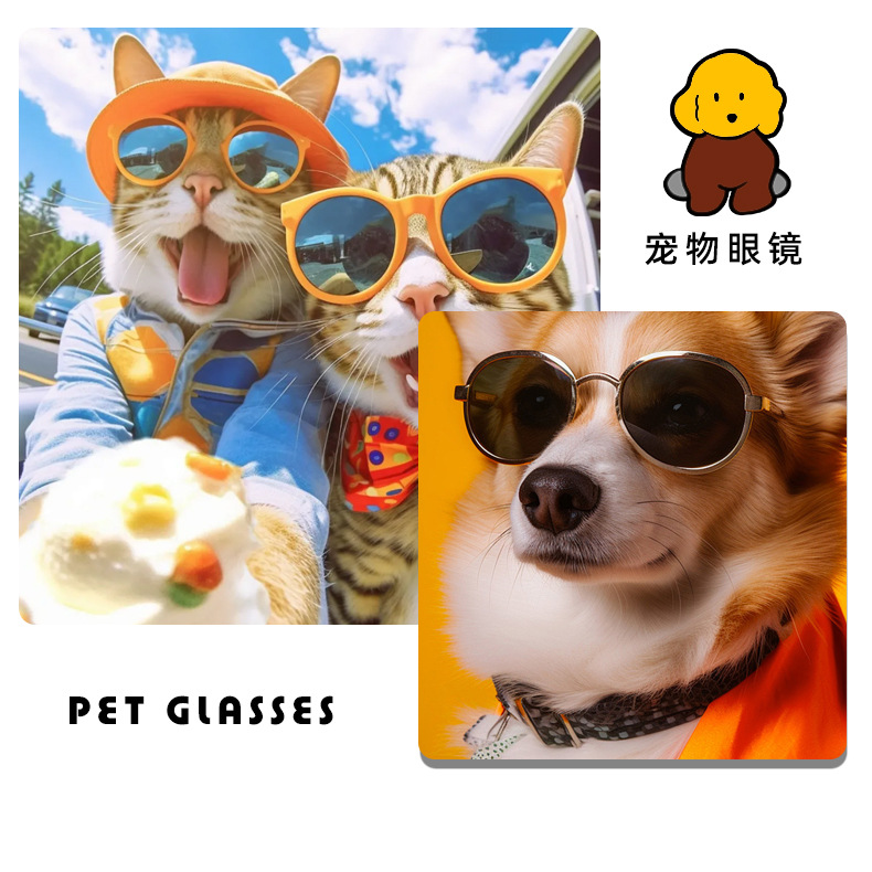 Ins新款韩国猫眼炫酷宠物狗狗猫咪创意墨镜拍照道具装饰太阳眼镜 投诉