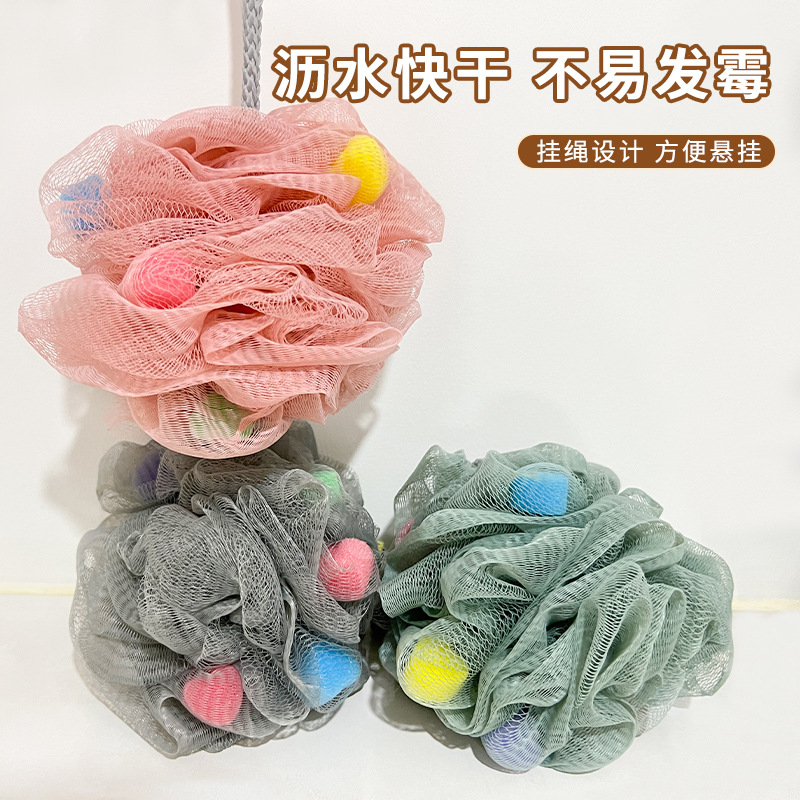 新款大号彩色海绵沐浴球舒适海绵挂绳创意搓澡淋浴快速气泡浴花 English | 投诉