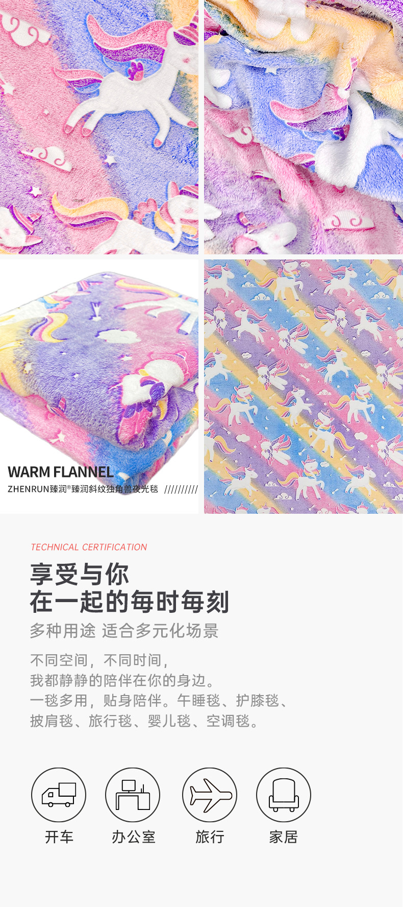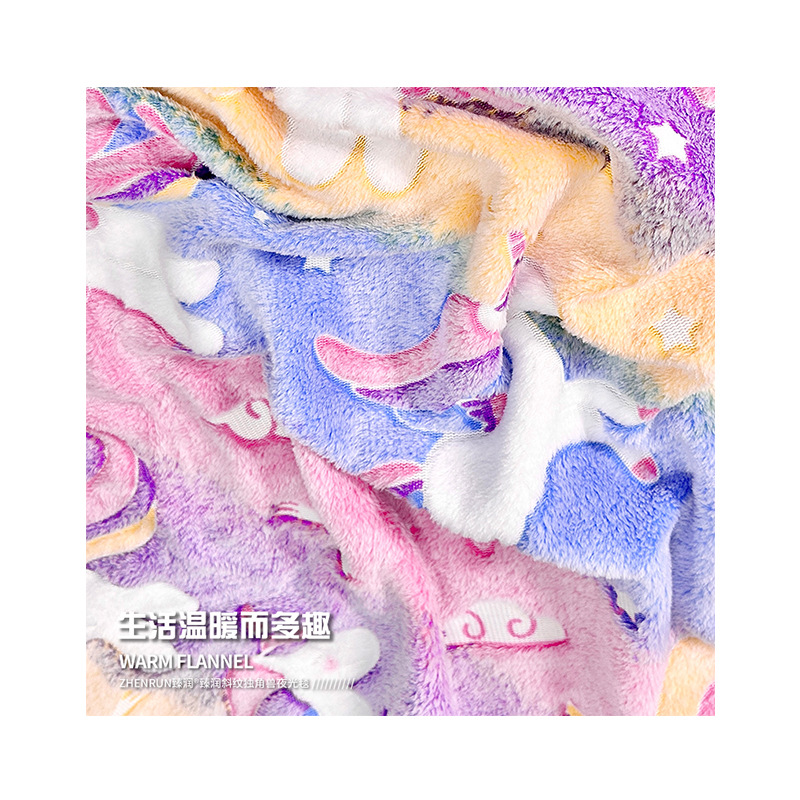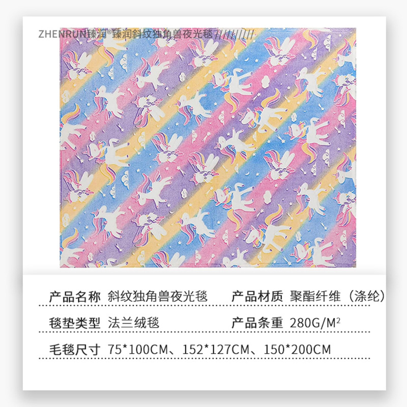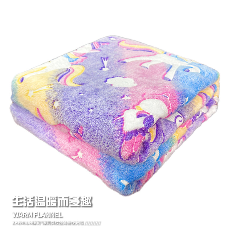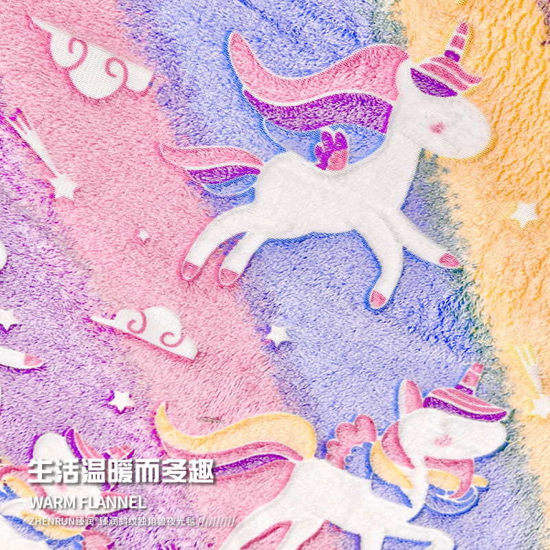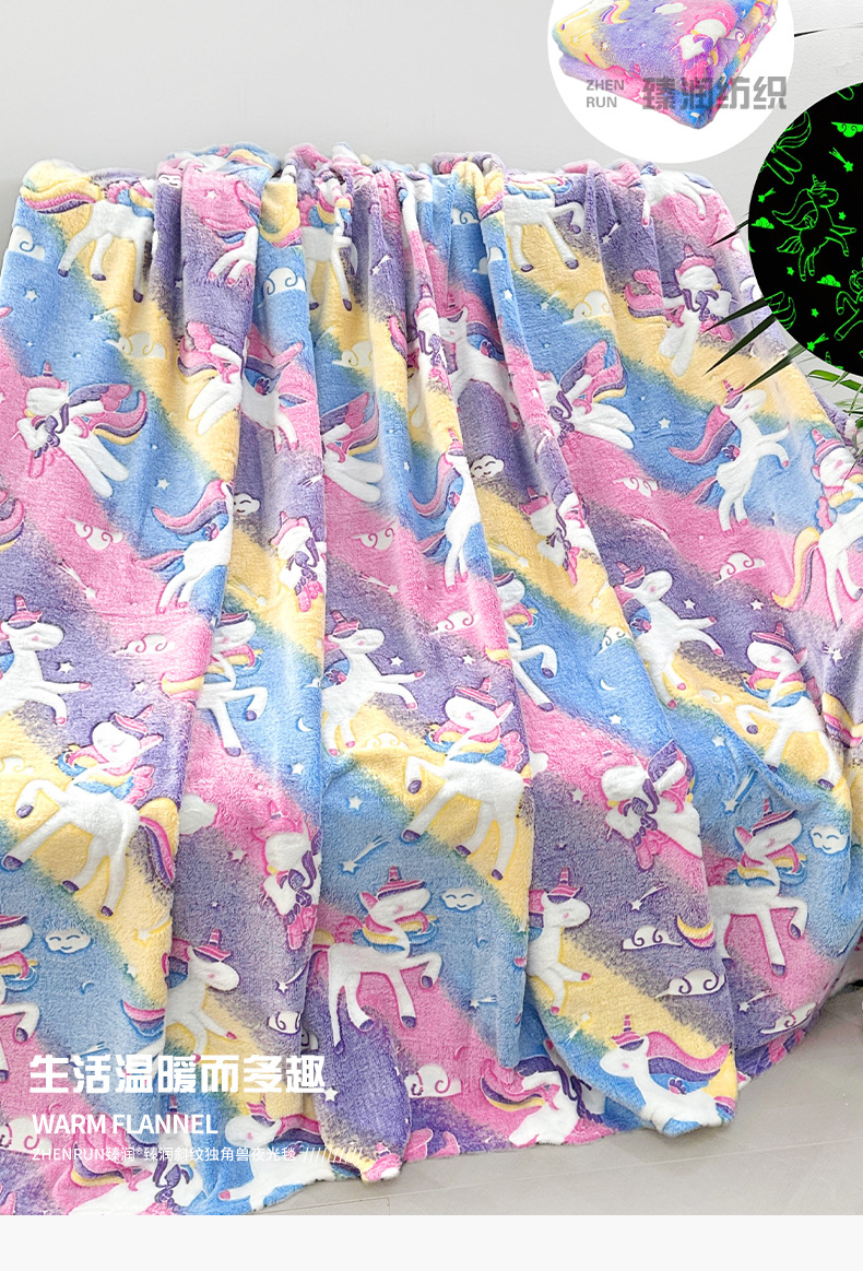 斜纹独角兽夜光发光毯彩虹飞马儿童盖毯保暖汽车卧室办公室午睡毯 English | 投诉