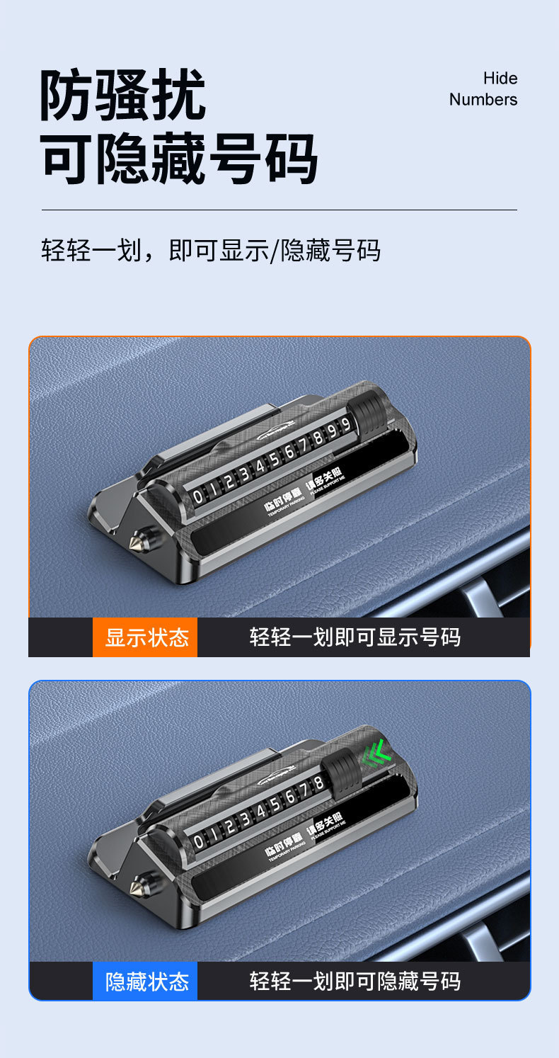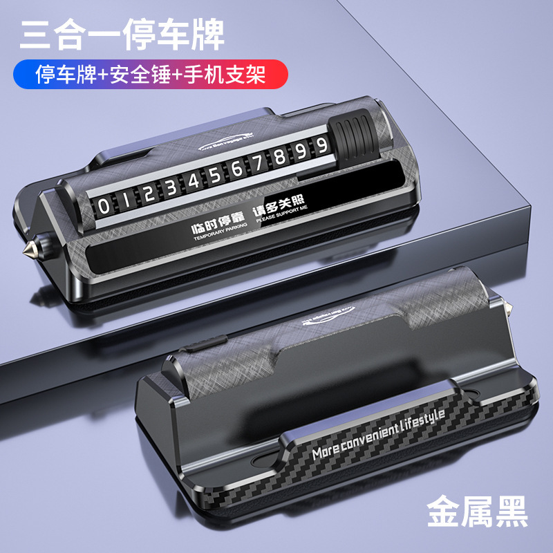 防盗报警汽车安全锤车用三合一多功能车载手机支架临时停车号码牌
