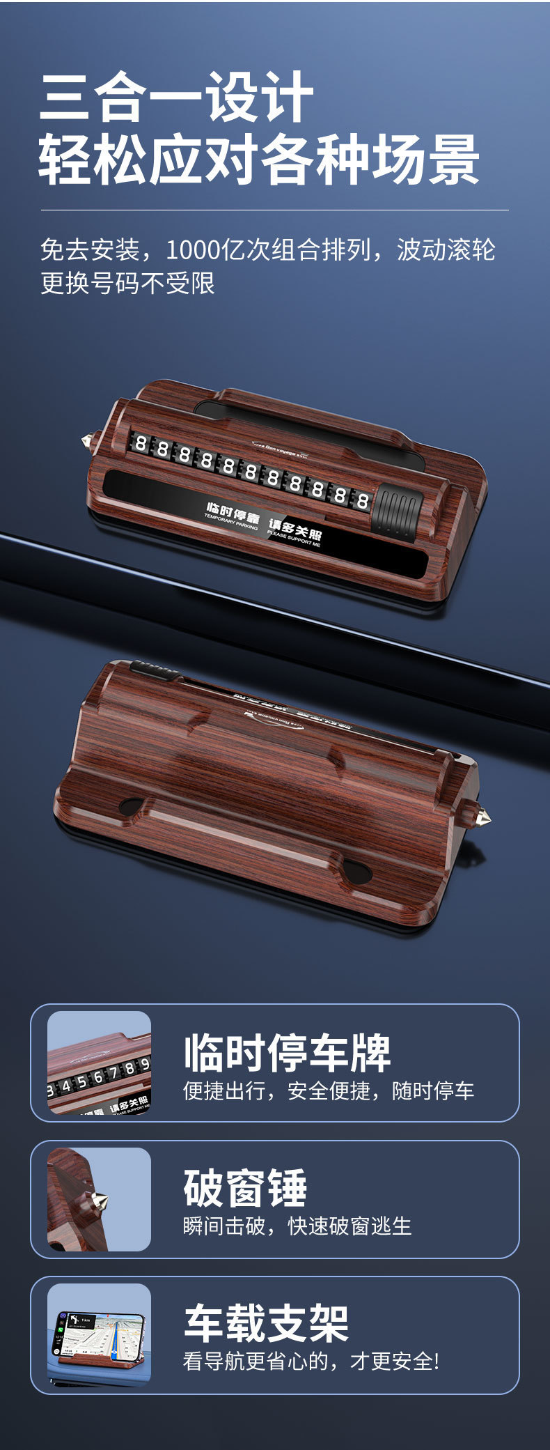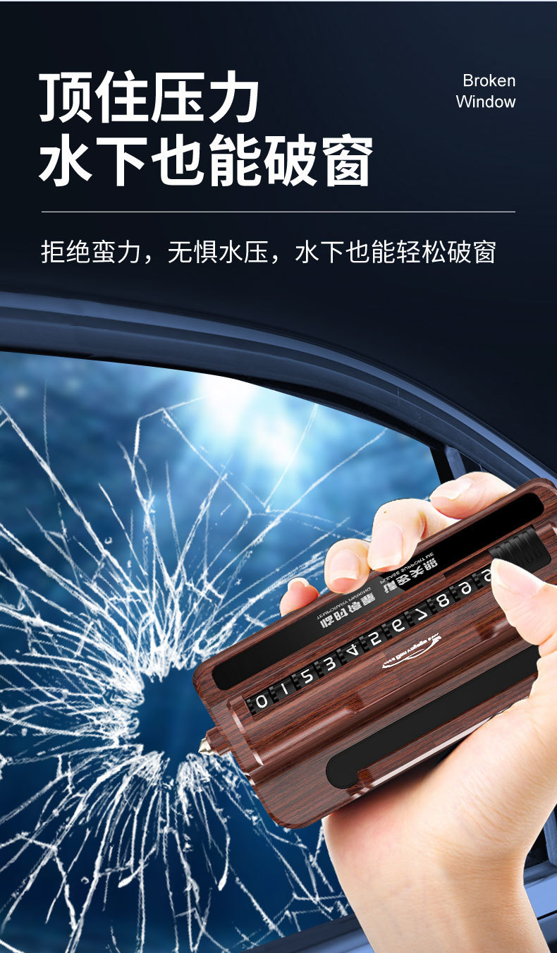防盗报警汽车安全锤车用三合一多功能车载手机支架临时停车号码牌 投诉