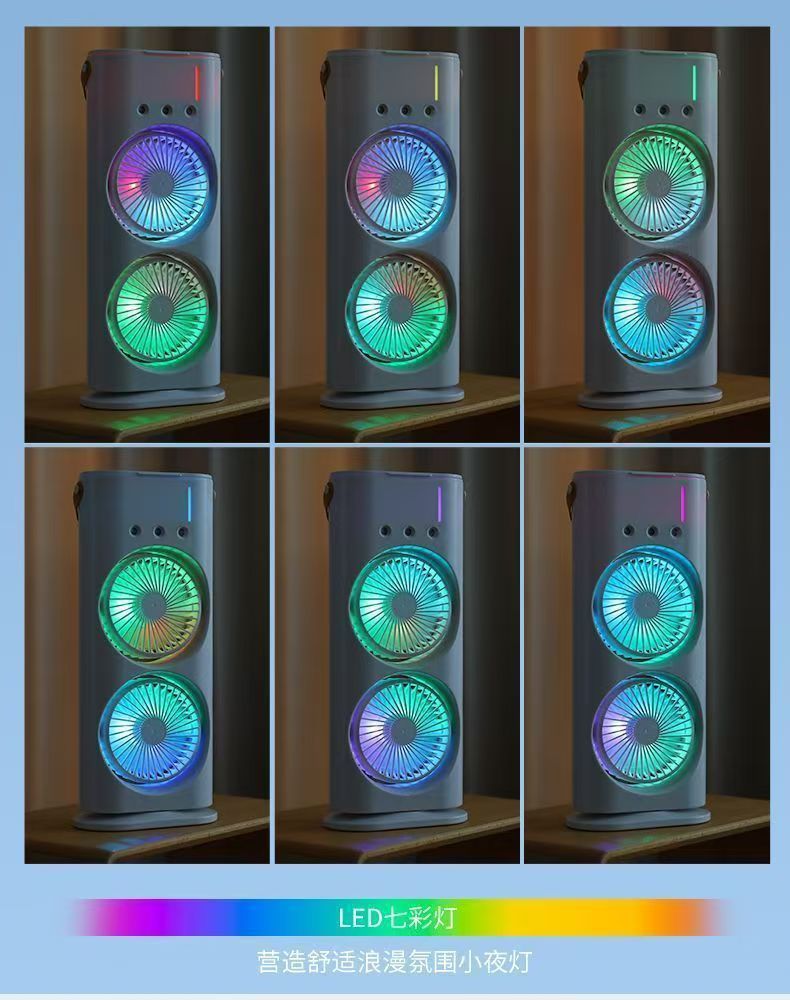 跨境桌面摇头喷雾风扇加湿水冷空调循环扇冷风扇USB充电三孔风扇 投诉