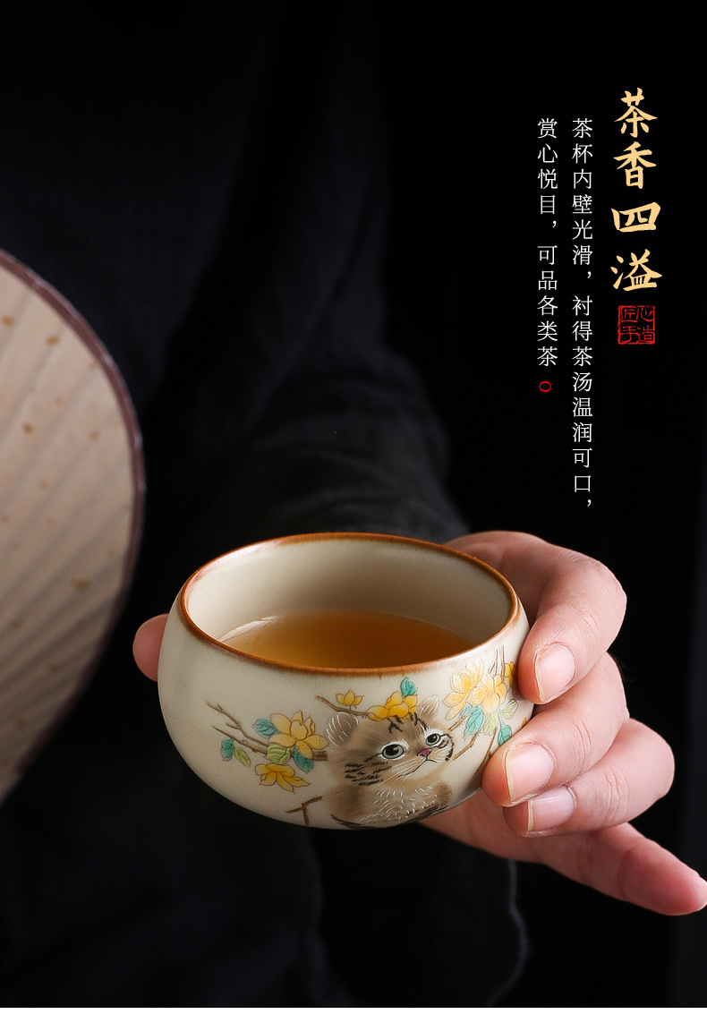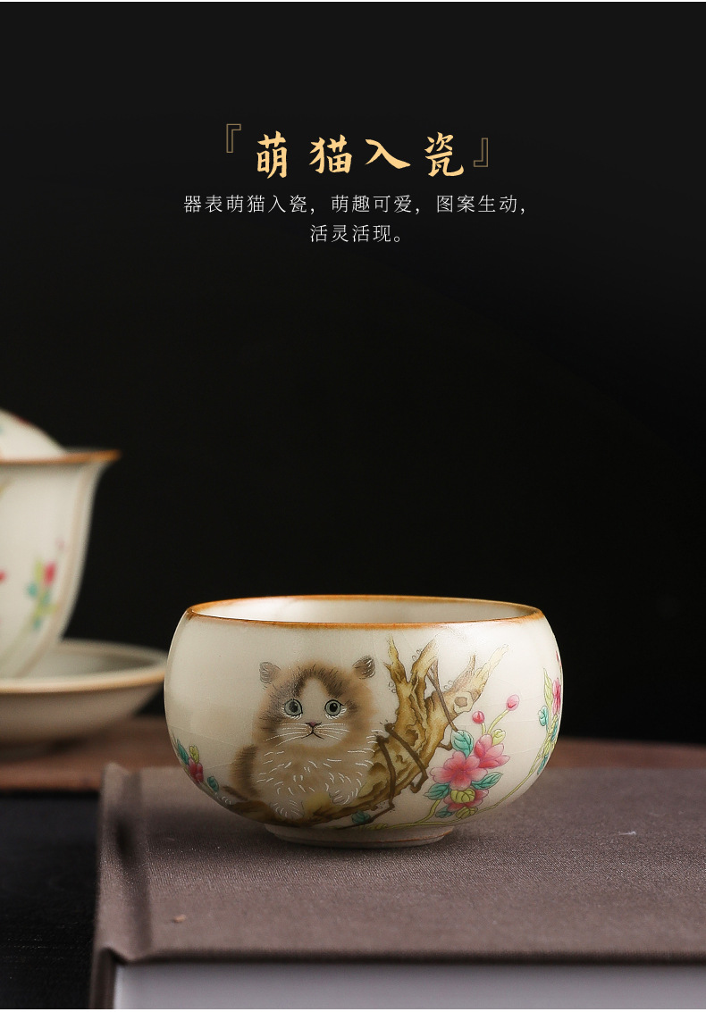 古源汝瓷-罗汉杯-红花小猫/80ml ¥0 997个可售