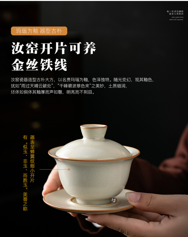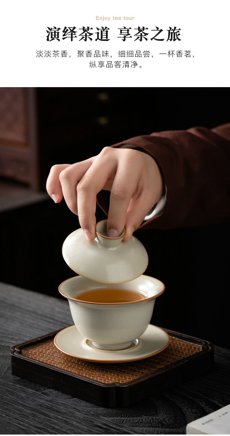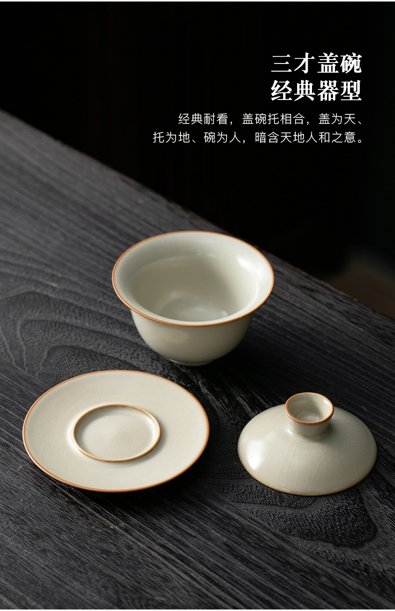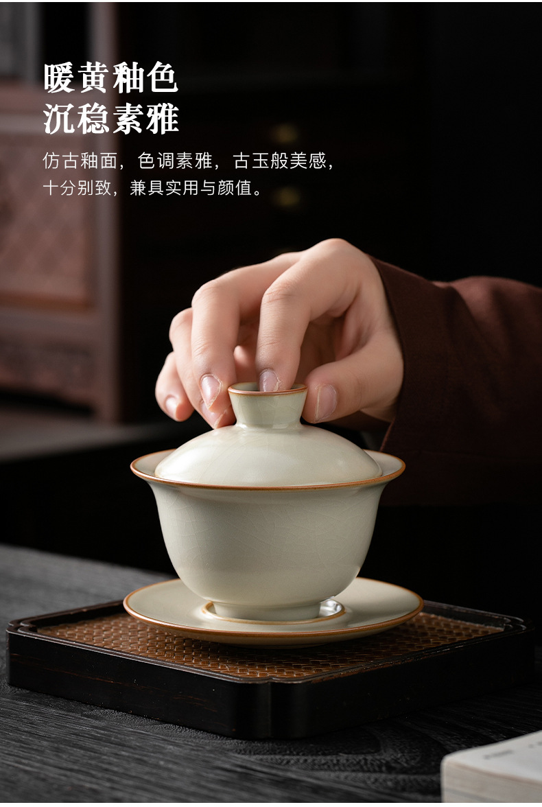 米黄汝窑三才盖碗茶杯单个高档防烫带盖泡茶公道杯三件套茶具套装 English | 投诉