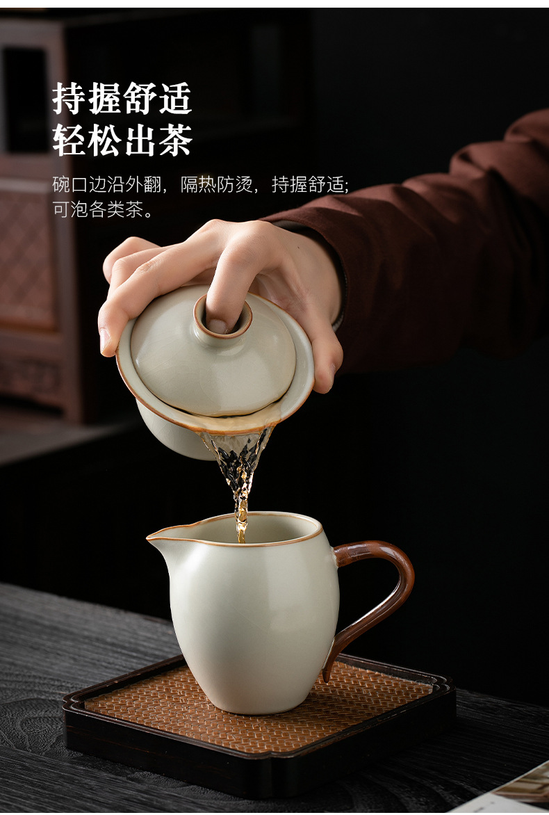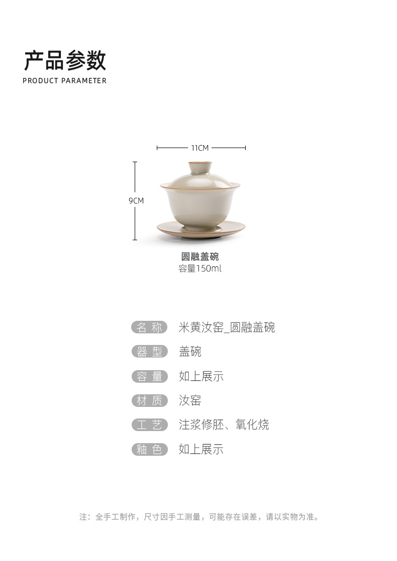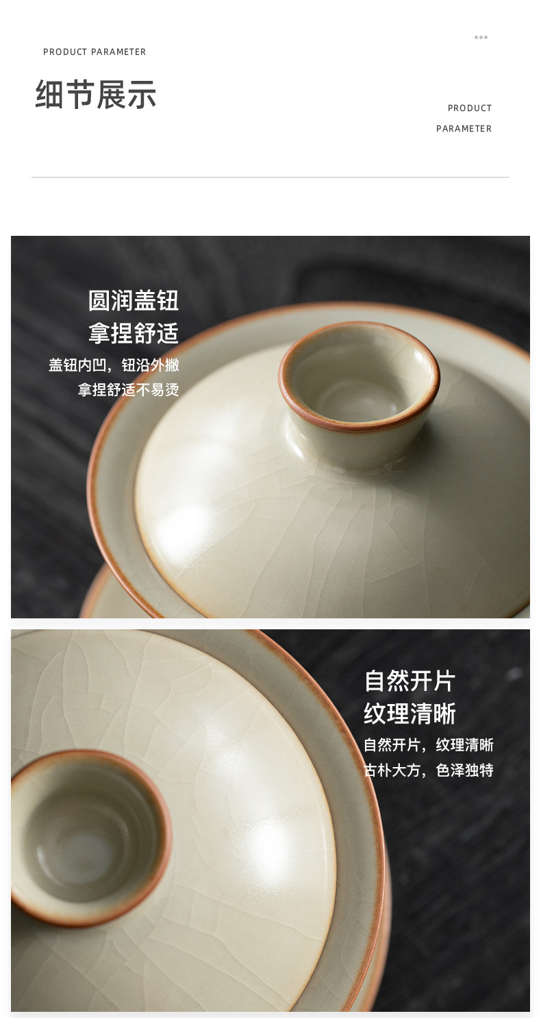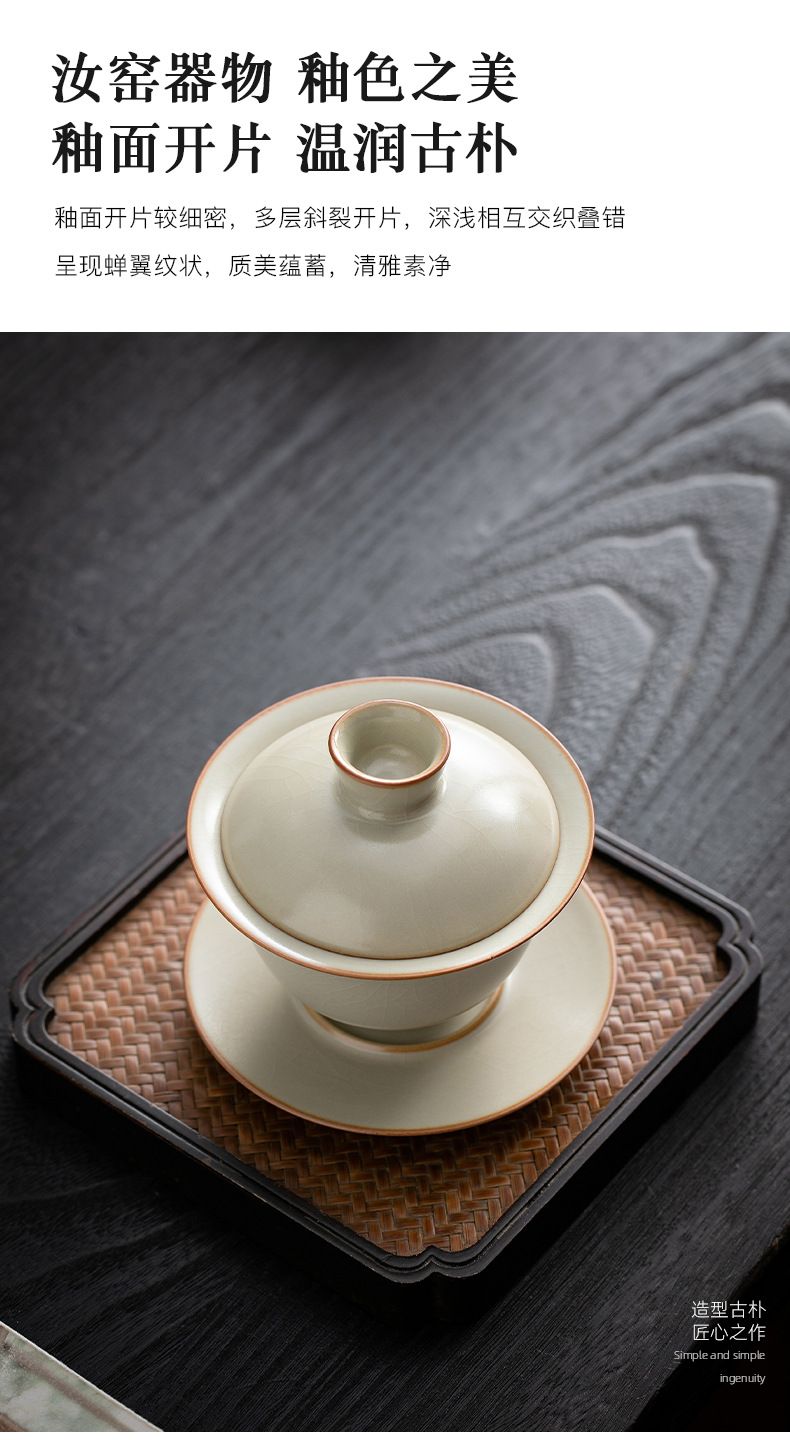 米黄汝窑三才盖碗茶杯单个高档防烫带盖泡茶公道杯三件套茶具套装 English | 投诉