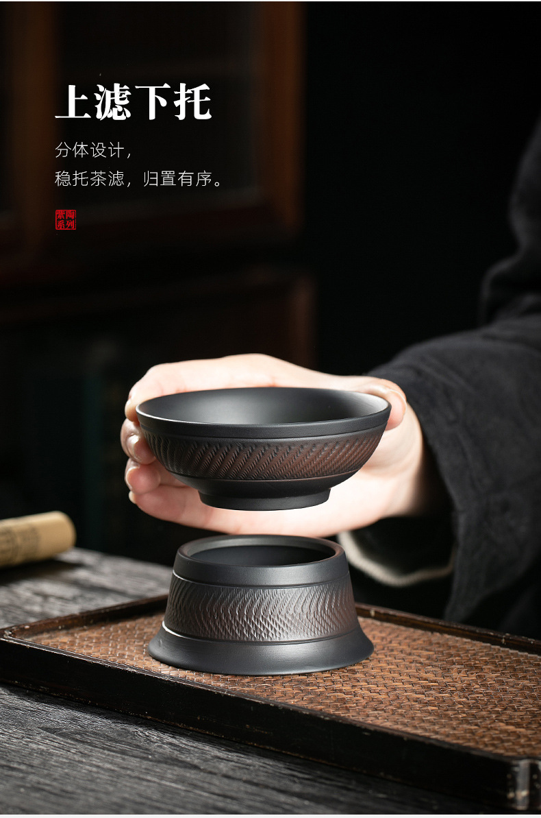 紫陶茶漏茶叶过滤器茶滤公道杯陶瓷茶斗密过滤网紫砂高档茶道配件