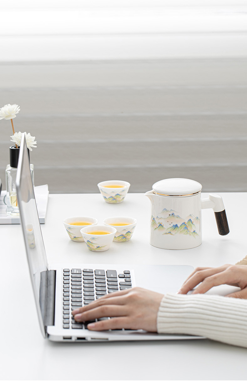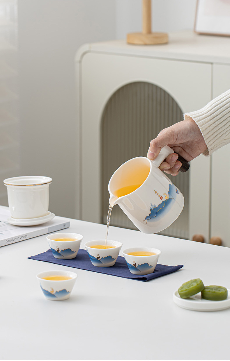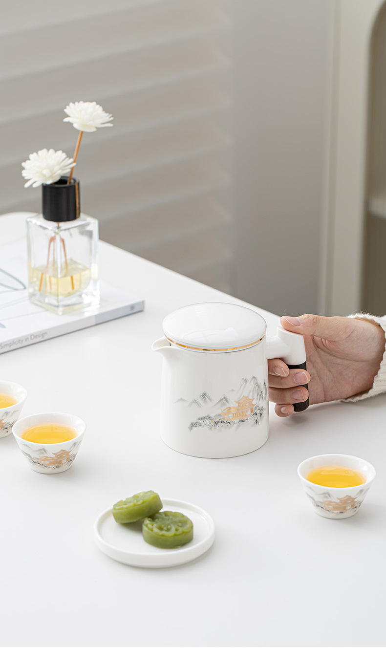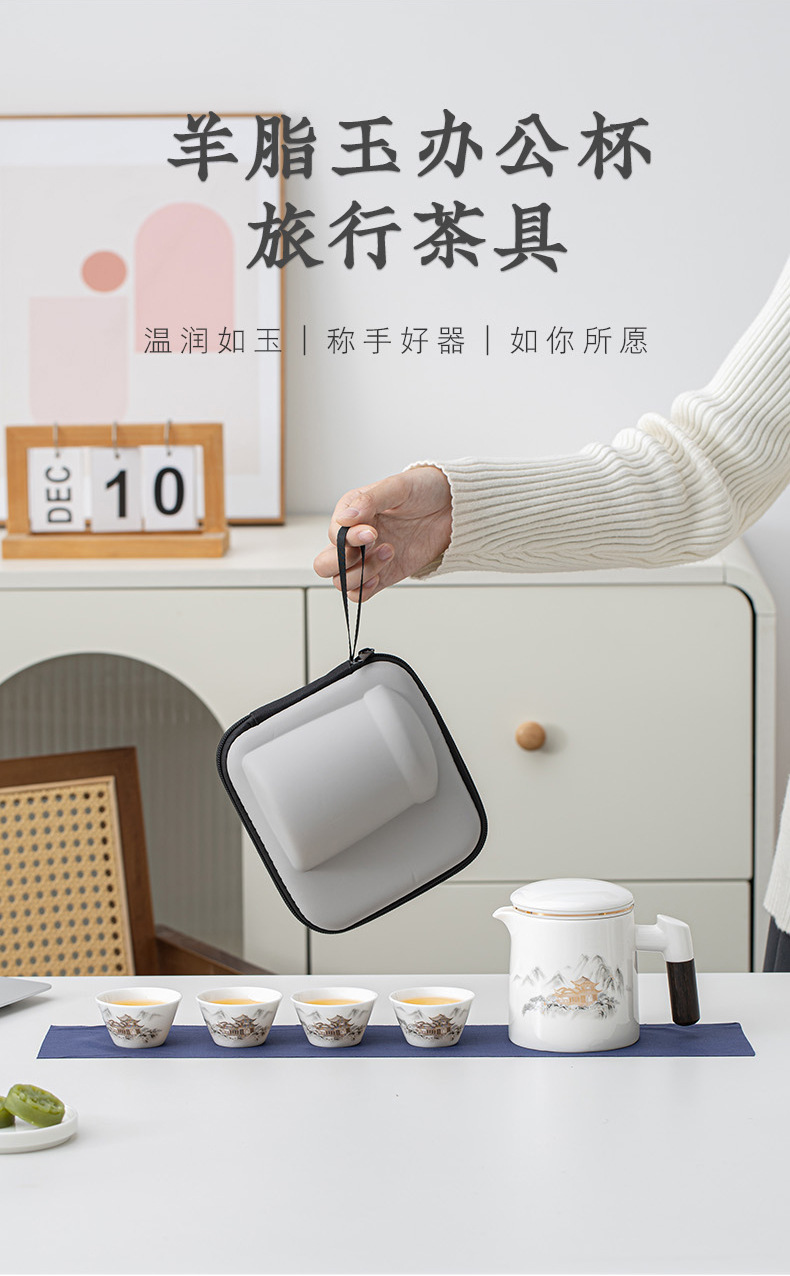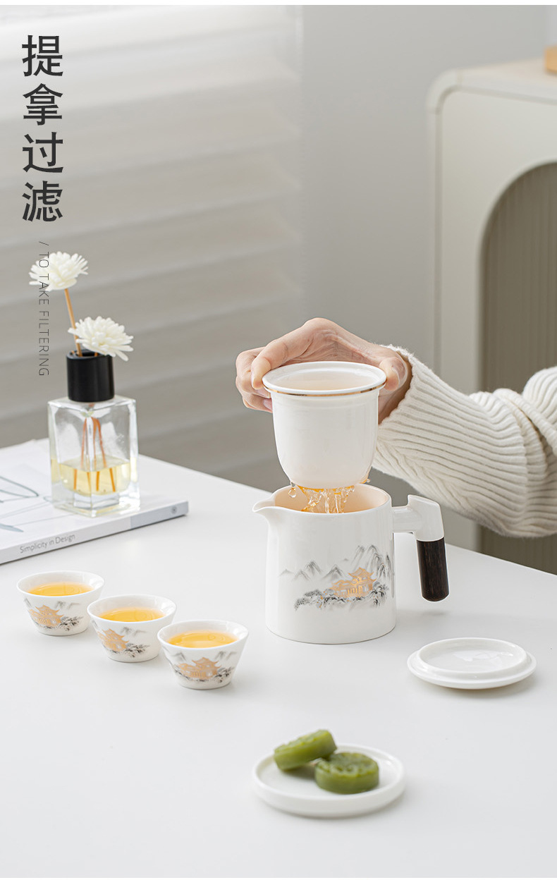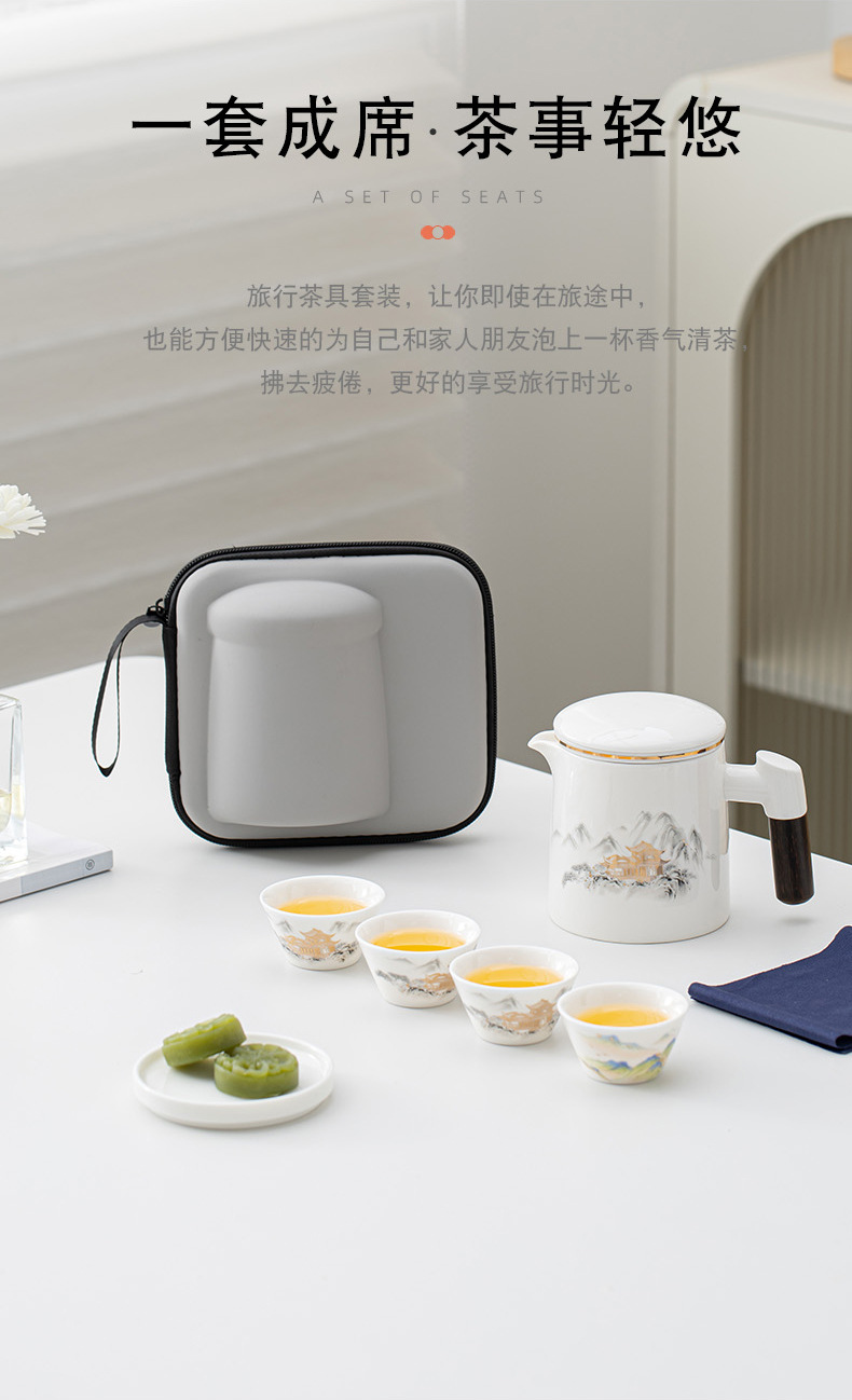 高档羊脂玉白瓷旅行茶具便携包户外一壶四杯茶水分离过滤泡茶杯 English | 投诉