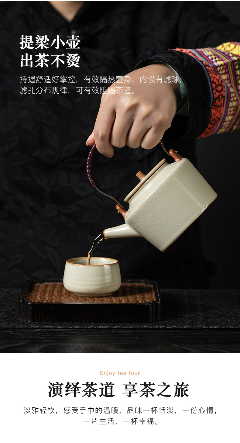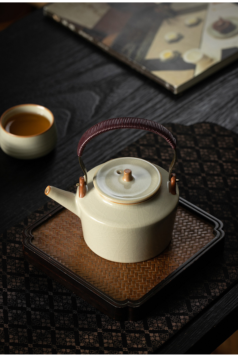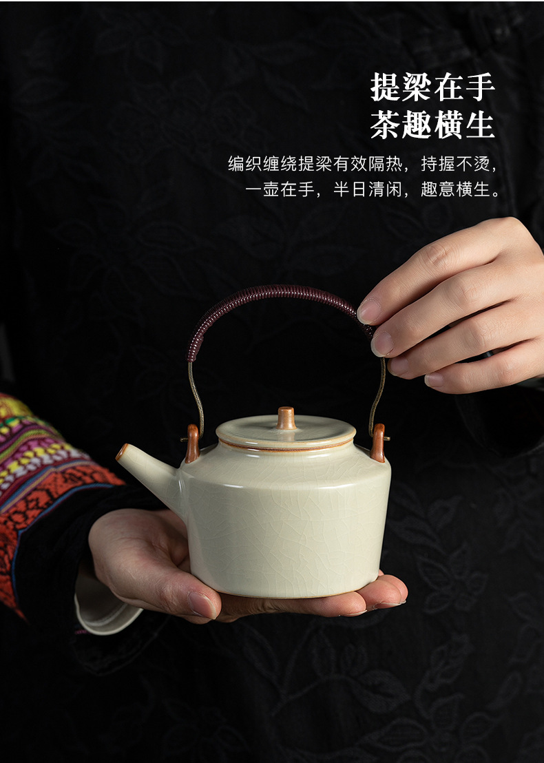 米黄汝窑茶壶单个家用大号提梁壶陶瓷单壶开片可养泡茶器茶具套装 English | 投诉