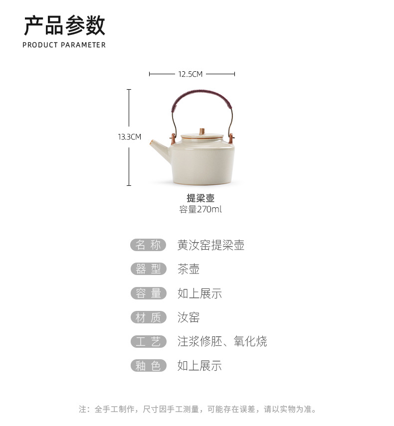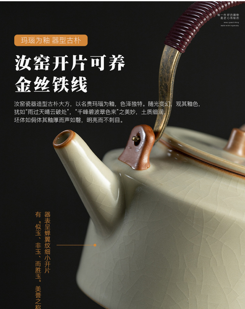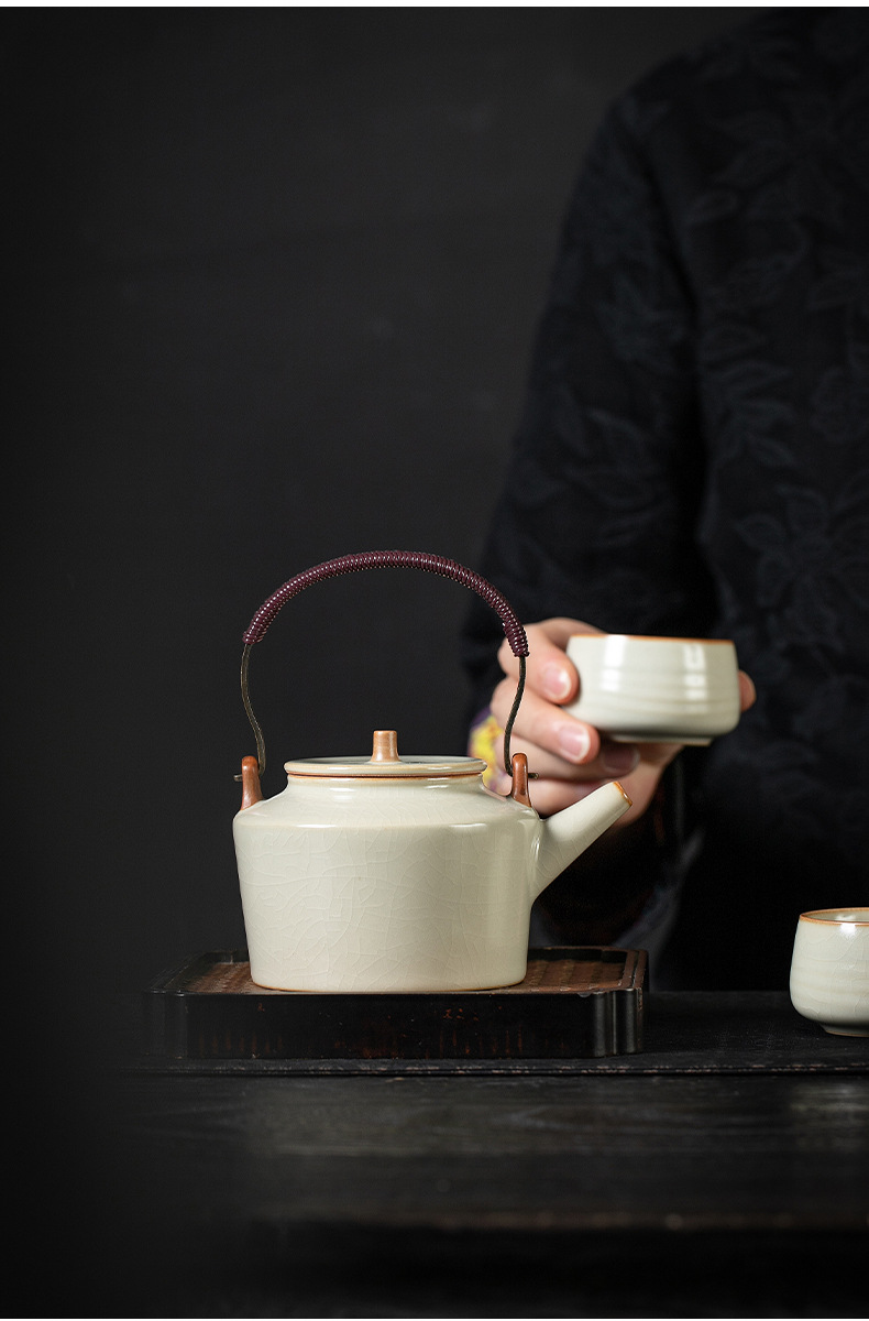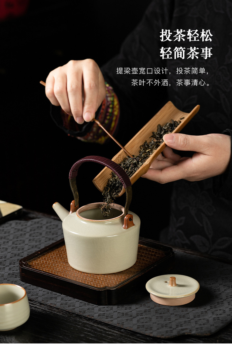 米黄汝窑茶壶单个家用大号提梁壶陶瓷单壶开片可养泡茶器茶具套装 English | 投诉