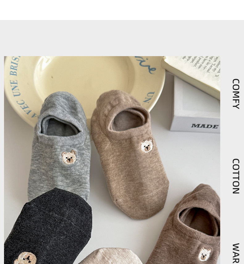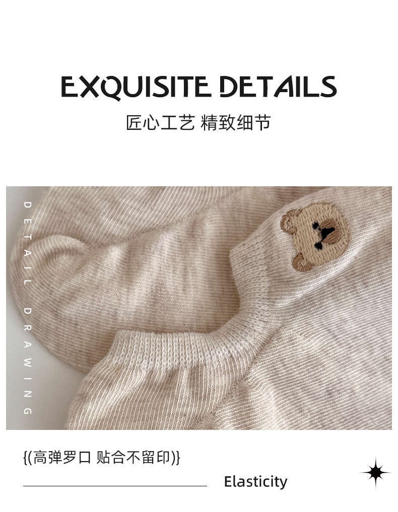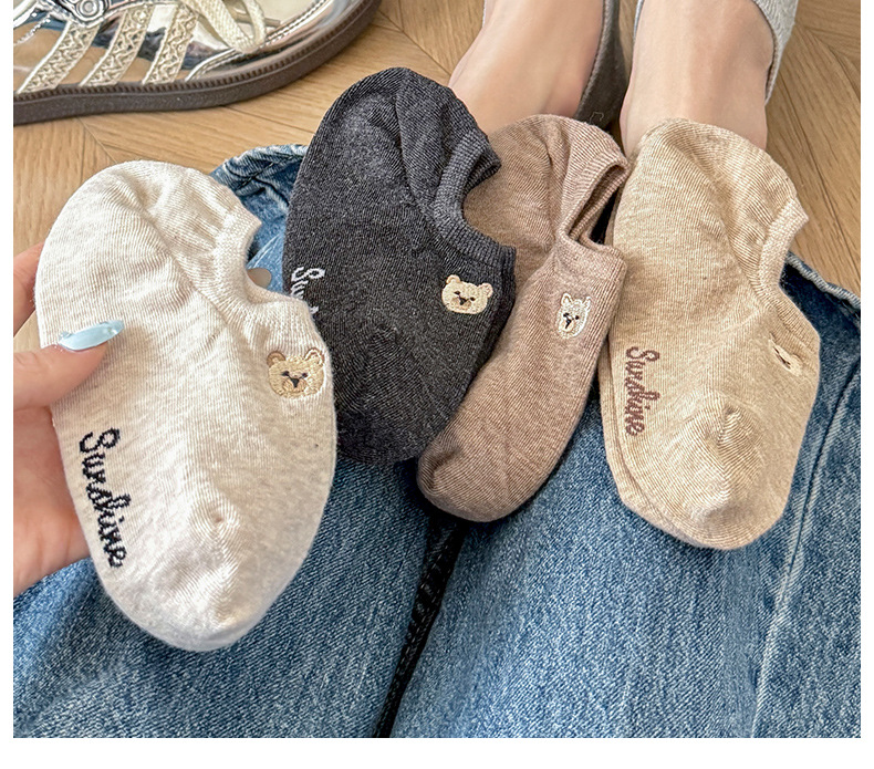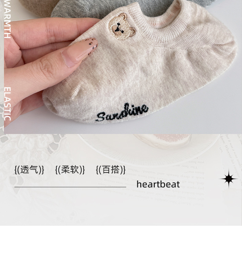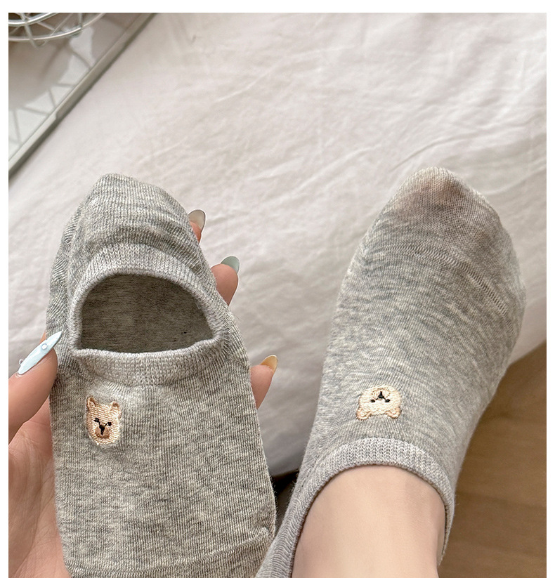 春夏季船袜可爱卡通小熊刺绣短袜薄款防滑硅胶浅口袜女袜隐形袜子