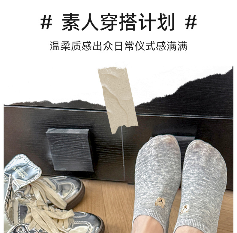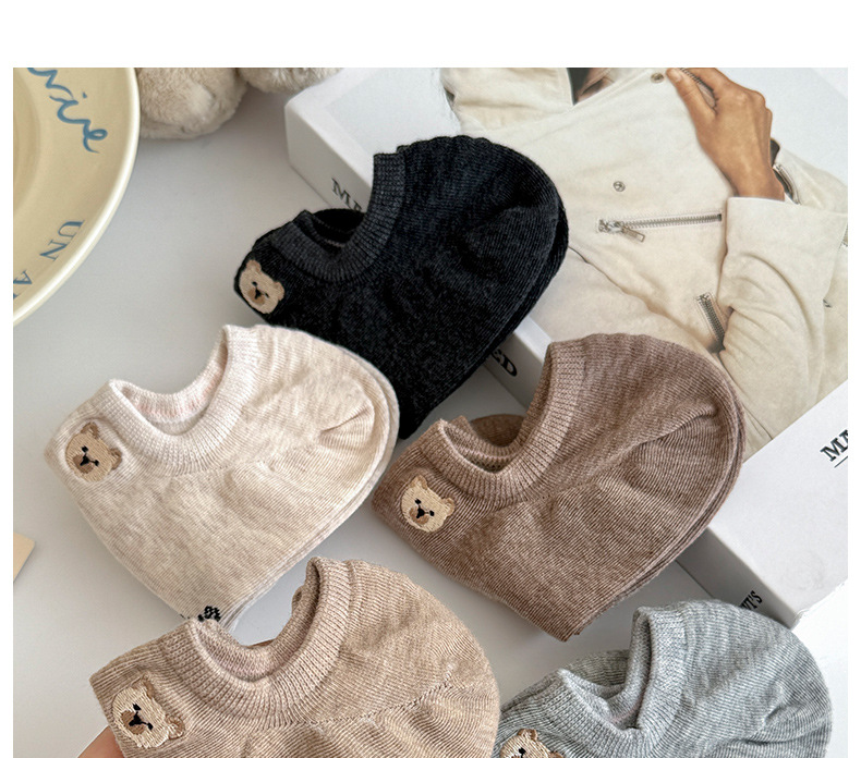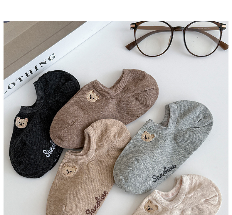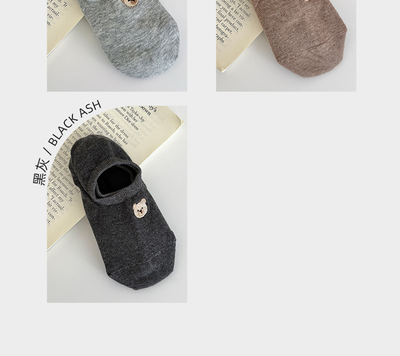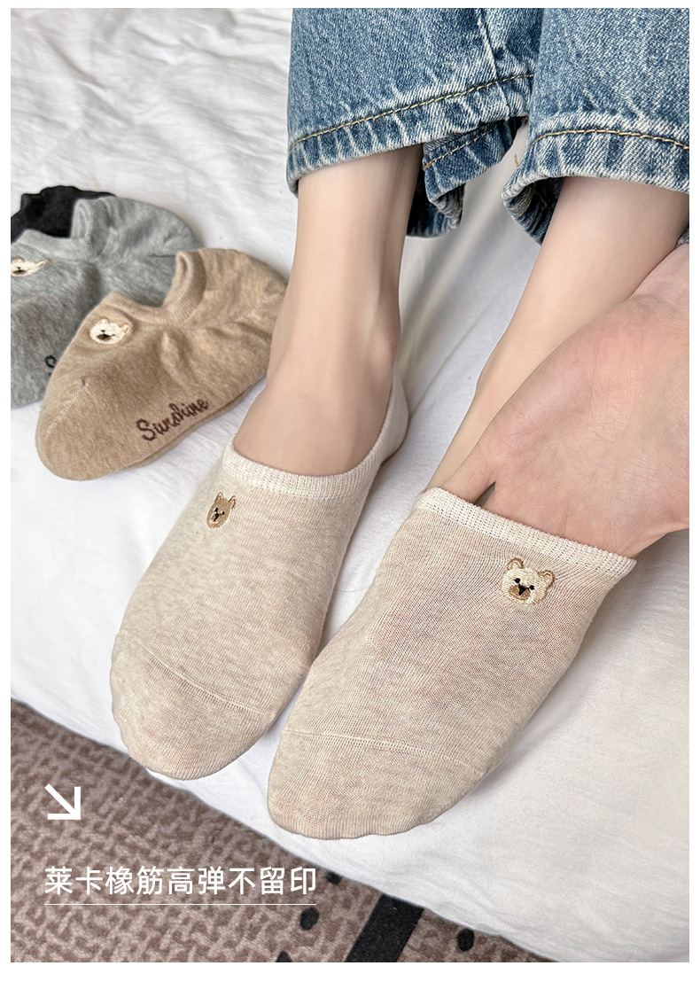 春夏季船袜可爱卡通小熊刺绣短袜薄款防滑硅胶浅口袜女袜隐形袜子 投诉