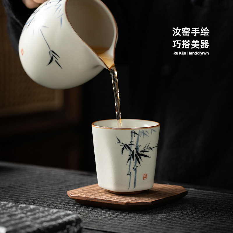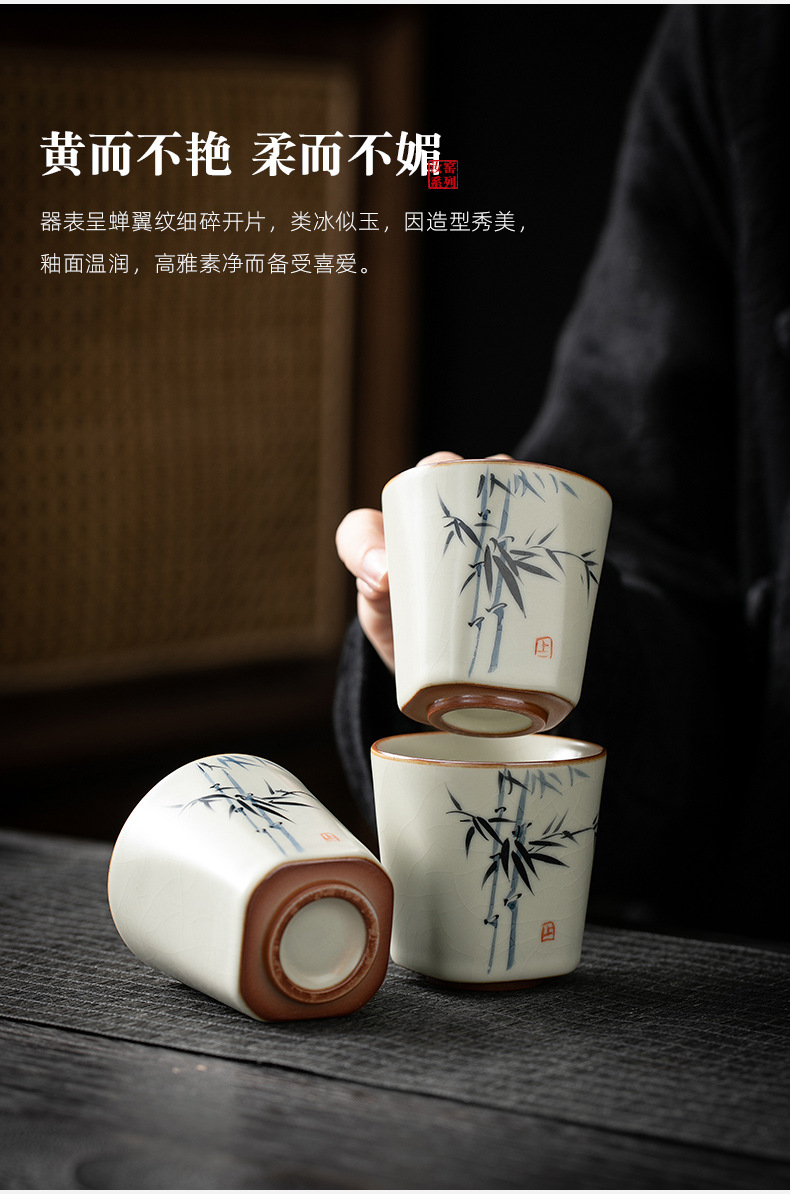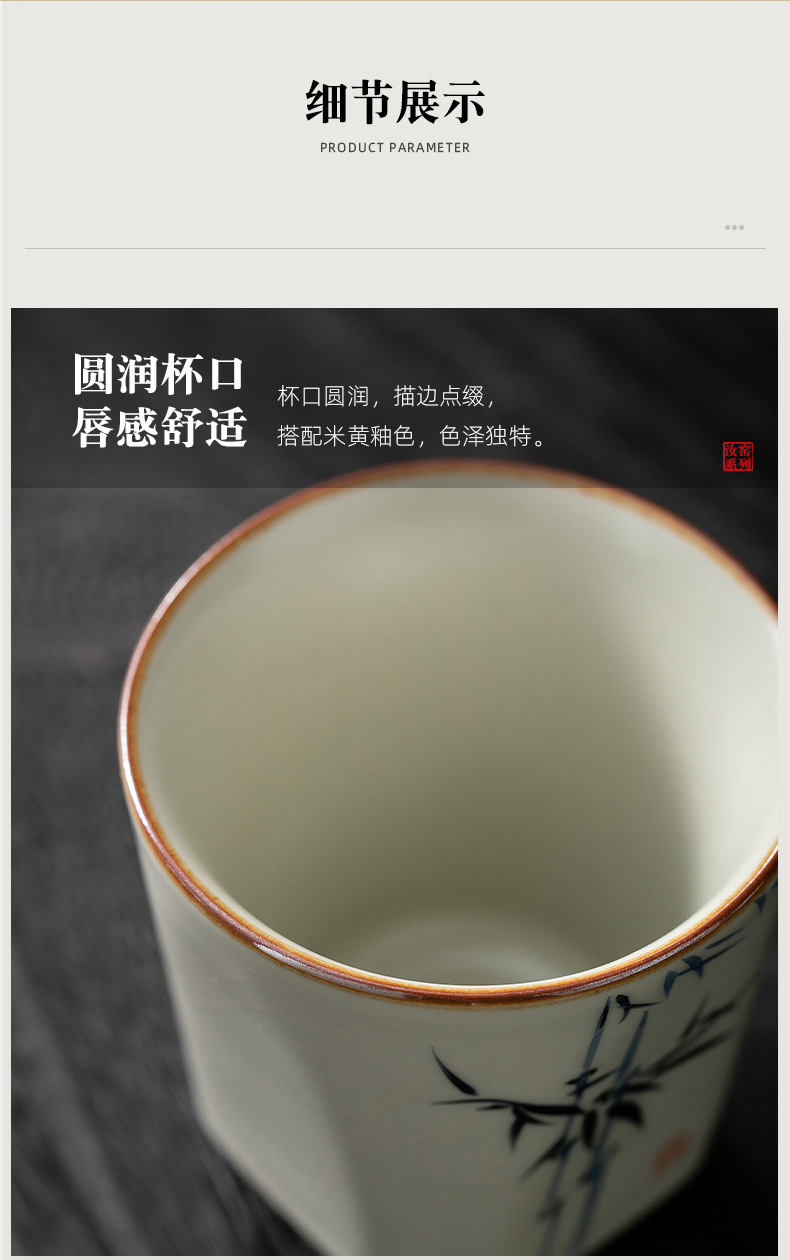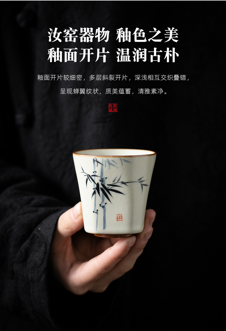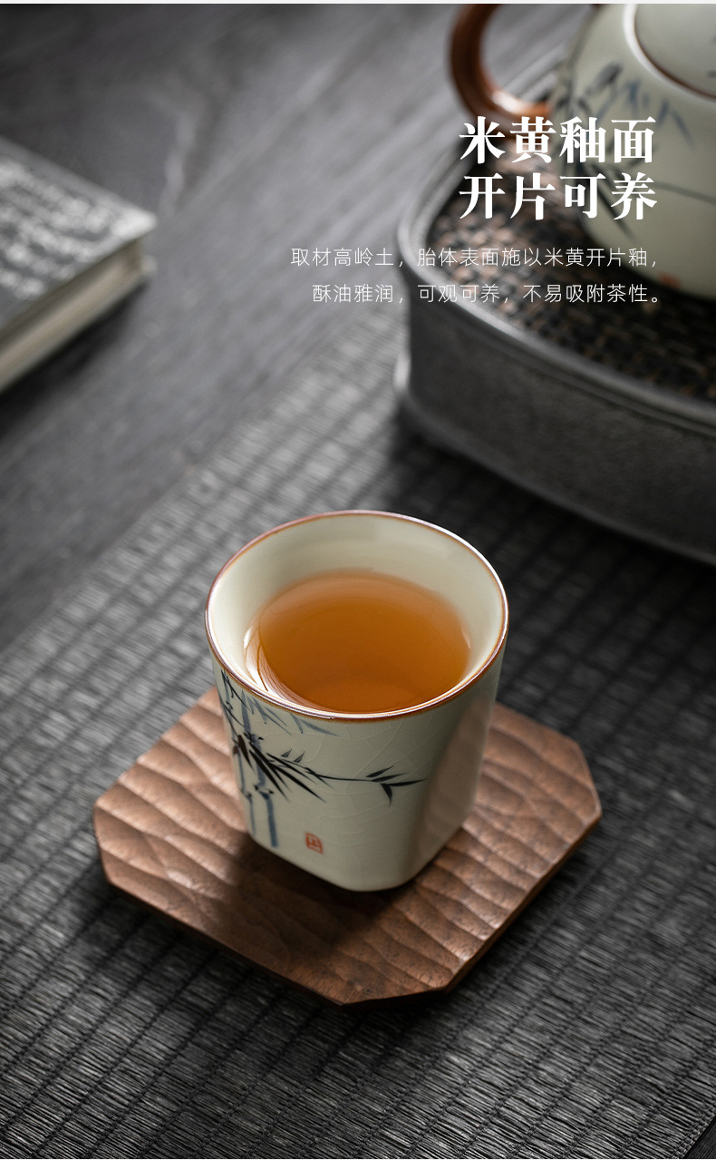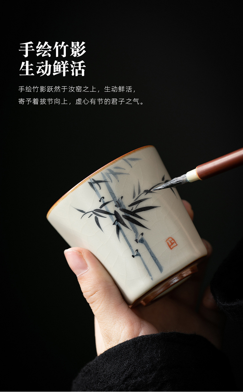 米黄汝窑主人杯单个人专用功夫茶具品茗杯家用手绘小茶杯陶瓷茶碗 English | 投诉