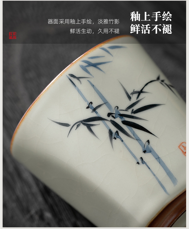 手绘竹韵黄汝-四方杯(简装) ¥3000 999个可售