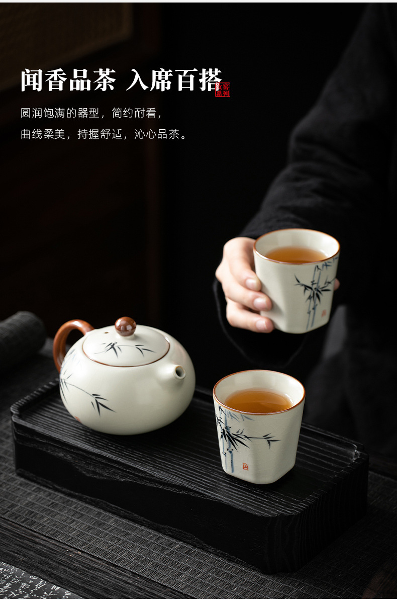手绘竹韵黄汝-四方杯-4个礼盒装 ¥14160 999个可售