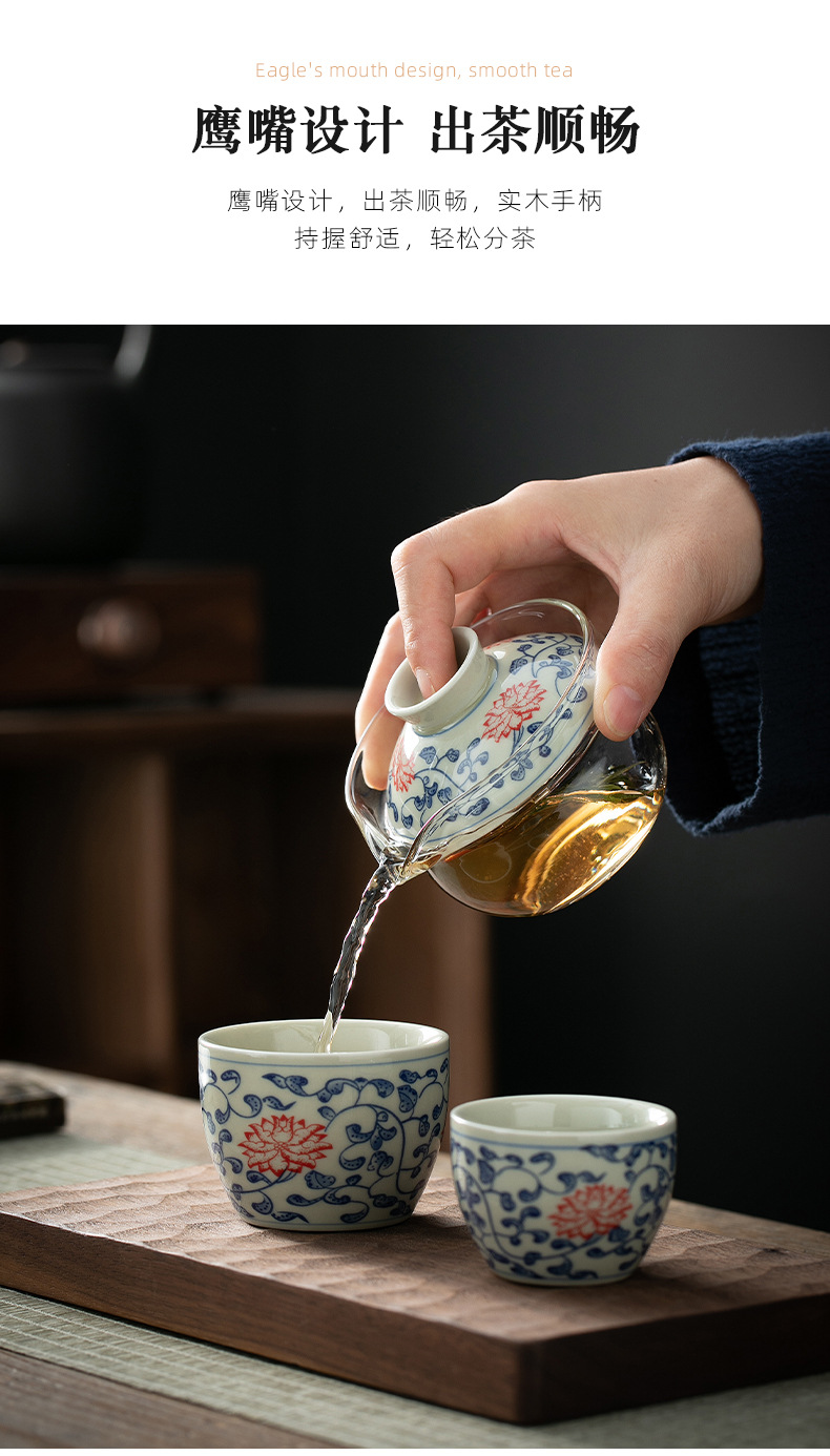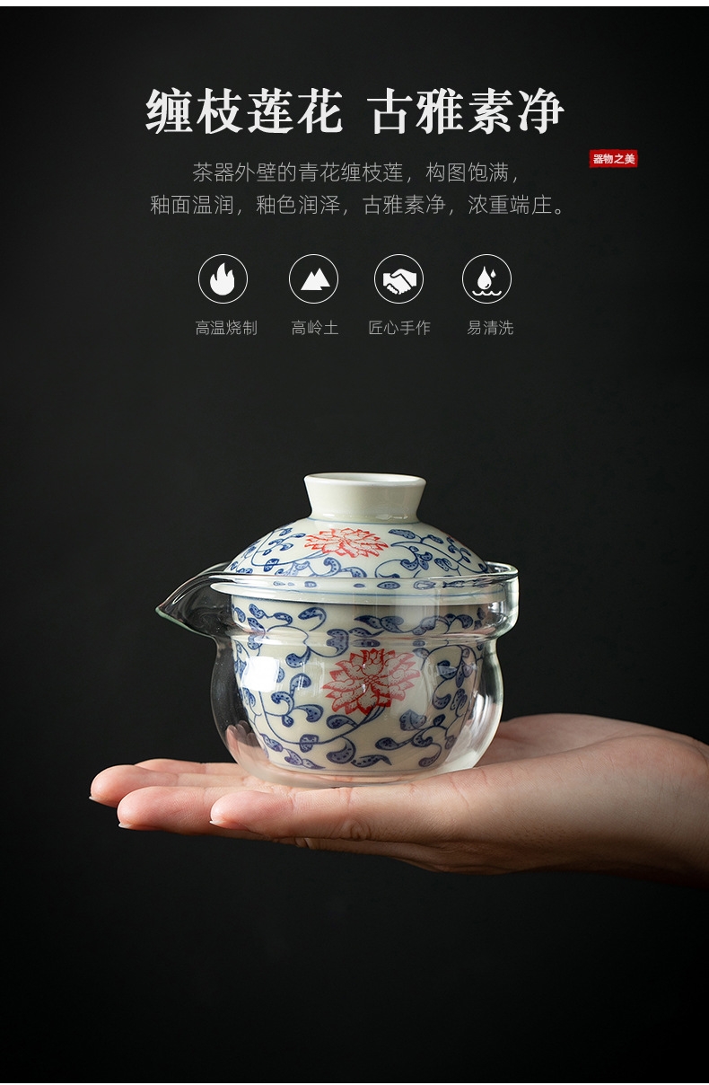 青花瓷茶壶单个盖碗家用手抓壶陶瓷玻璃小号泡茶器不烫手功夫茶具 English | 投诉
