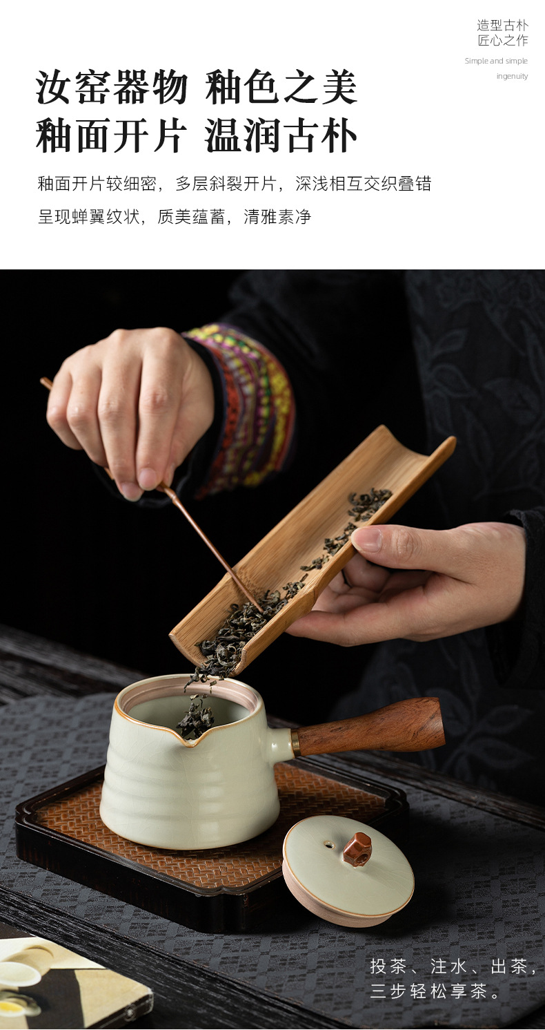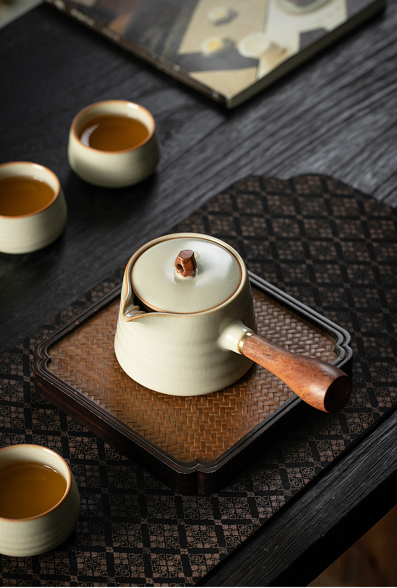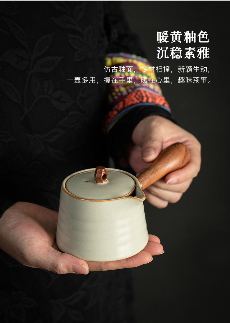 米黄汝窑侧把壶茶壶泡茶器单个壶陶瓷茶具套装家用手柄功夫泡茶壶 English | 投诉