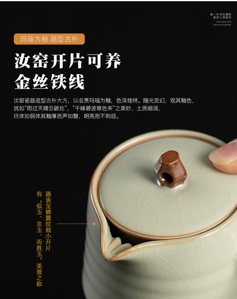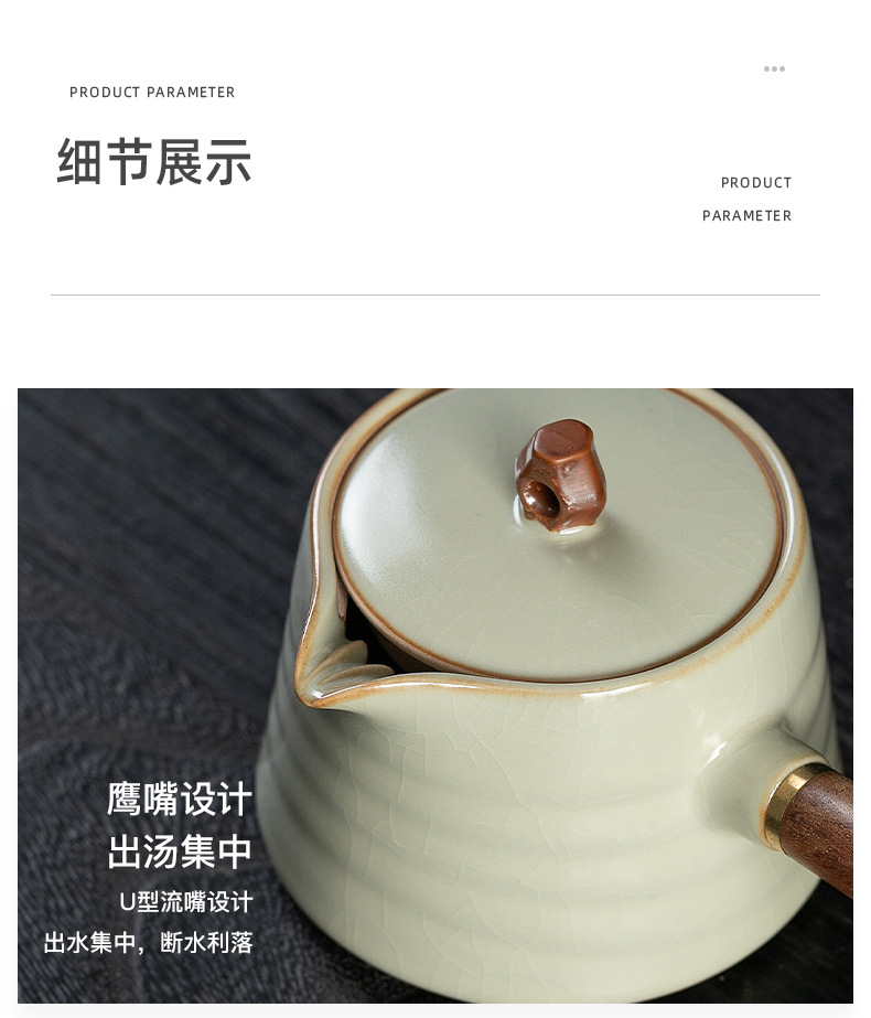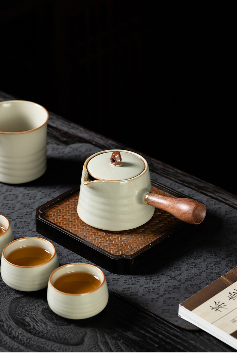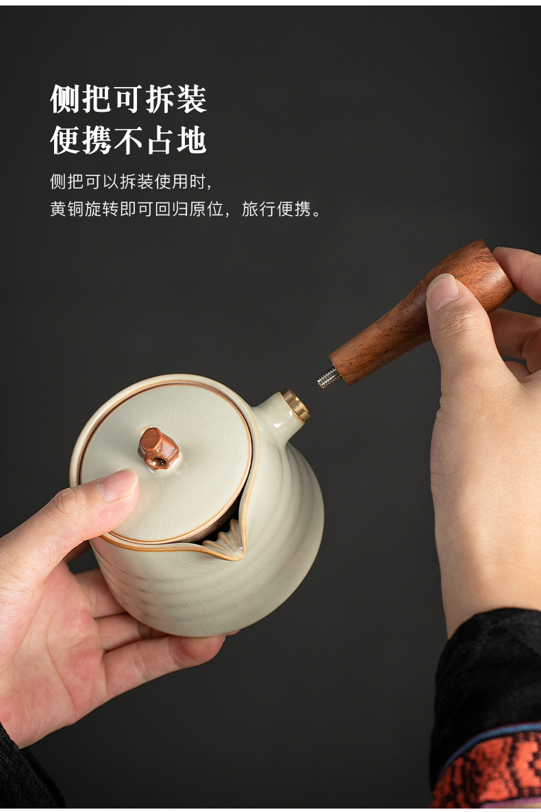 米黄汝窑侧把壶茶壶泡茶器单个壶陶瓷茶具套装家用手柄功夫泡茶壶 English | 投诉